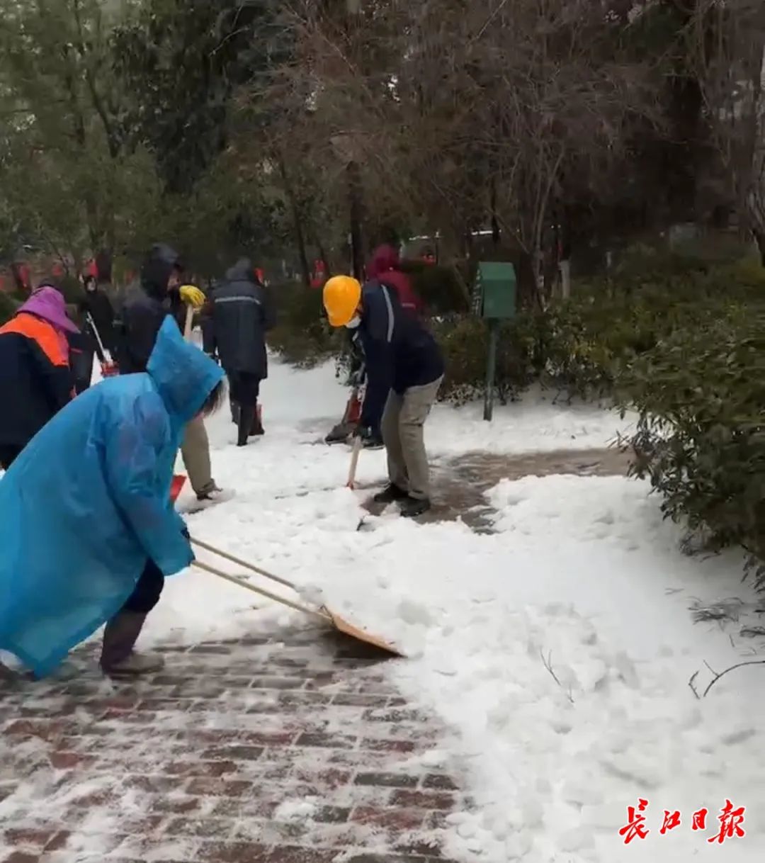 ▲物业工作人员物资准备充足,分工明确,铲冰除雪效率很高