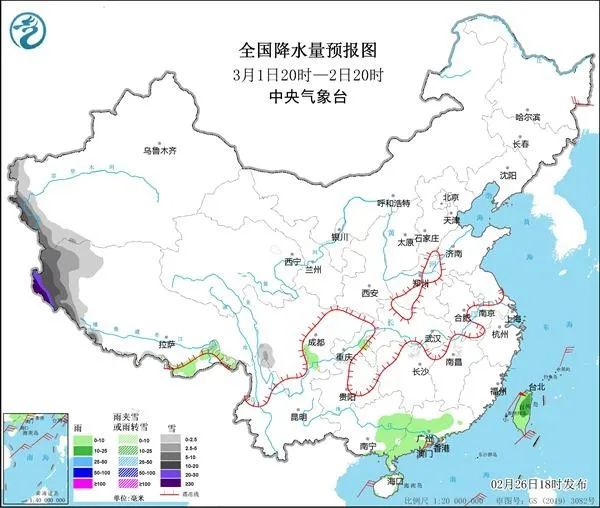 2月28日(周三):北部阴天有小到中雨,南部阴天有中到大雨,偏北风2到3级转3到4级,阵风5到6级,气温3~6℃