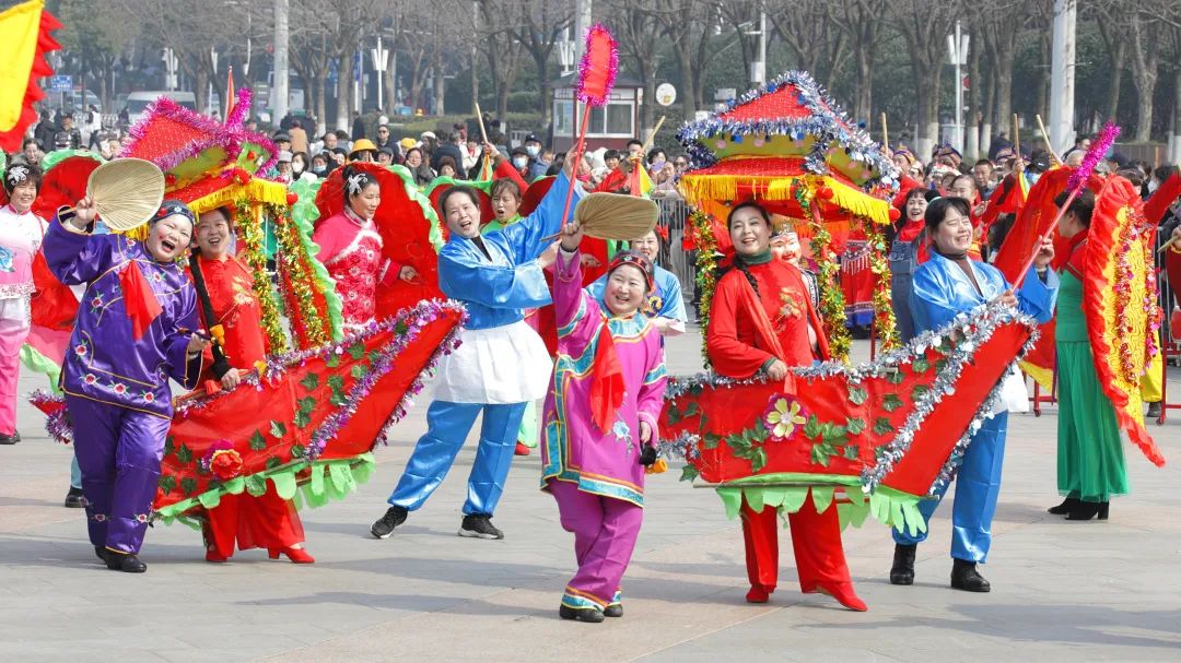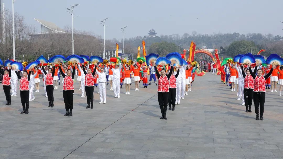 活动在喜庆祥和的《欢天喜地闹新春》表演中落下帷幕。该节目是武昌区文化馆编创,联合首义路街云鹤飞舞艺术团、粮道街经心艺术团、杨园街秋色舞团、南湖街南湖艺术团、中华路街文华艺术团参与表演的百人群舞。表演者身着节日盛装,随着节奏翩翩起舞。舞步矫健有力,动作整齐划一,展现出极高的舞蹈技巧和团队默契。演出融合了多种舞蹈元素,舞者们通过优美的舞姿和富有感染力的表演,传递出新年的祝福和喜悦。