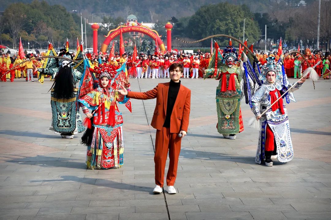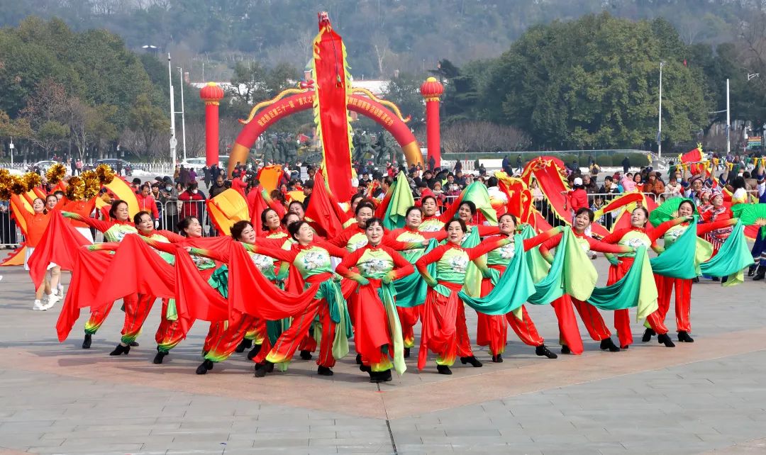 紫阳湖街歌笛湖时尚锣鼓艺术团、中南路街晒湖社区龙凤腰鼓队敲响了新年祝福的锣鼓声;石洞街白云之声艺术团、白沙洲街长江紫都社区群艺百岁剧团随着激昂的节奏舞出内心的热情;南湖街文学艺术界联合会带来的民俗表演精彩开演,现场气氛再度升温;武昌区武术协会表演的太极功夫扇是在太极拳基础上进行创编,柔中有刚,轻盈圆活,飘逸潇洒,自然高雅。表演者精神抖擞,动作整齐划一,扇面时开时合,动作优美造型大方,一招一式融入了千年的中华文明,举手投足焕发着自强不息的民族精神。