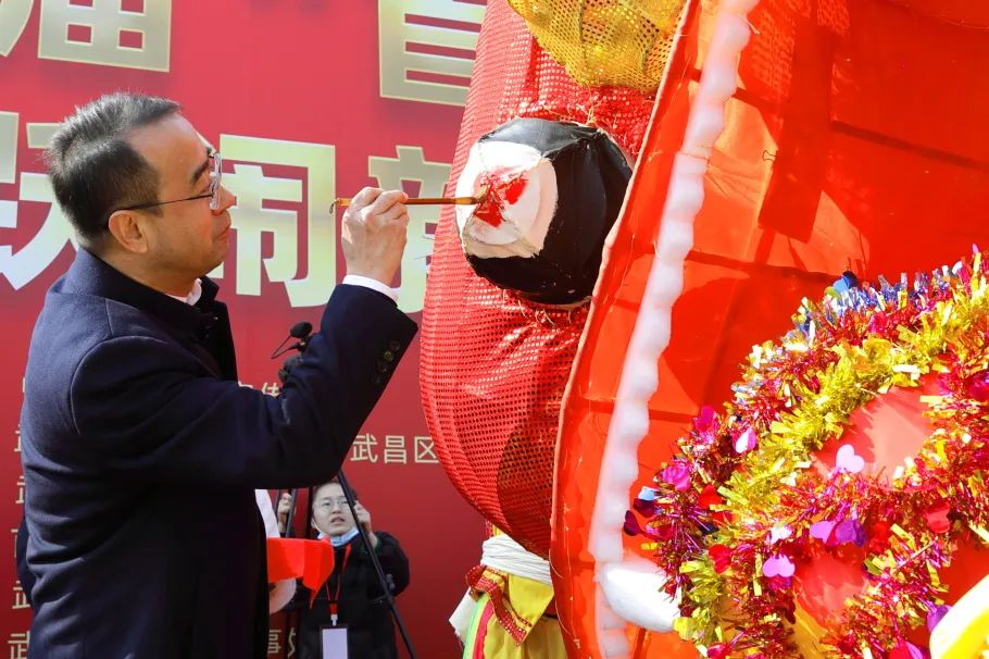 早上10点,活动在武汉市文化和旅游局副局长唐昱,中共武昌区委常委、宣传部部长甘世斌为高龙点睛,武昌区人大常委会副主任刘重武,武昌区人大教科文卫工委主任李艳霞,武昌区文化和旅游局党组书记、局长王娟,辛亥革命博物院副院长刘宏国为飞龙点睛后拉开精彩帷幕。