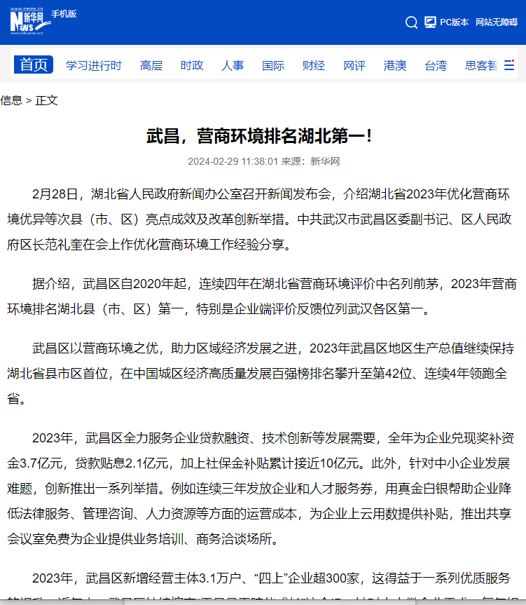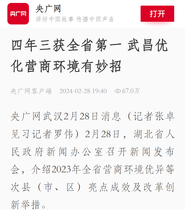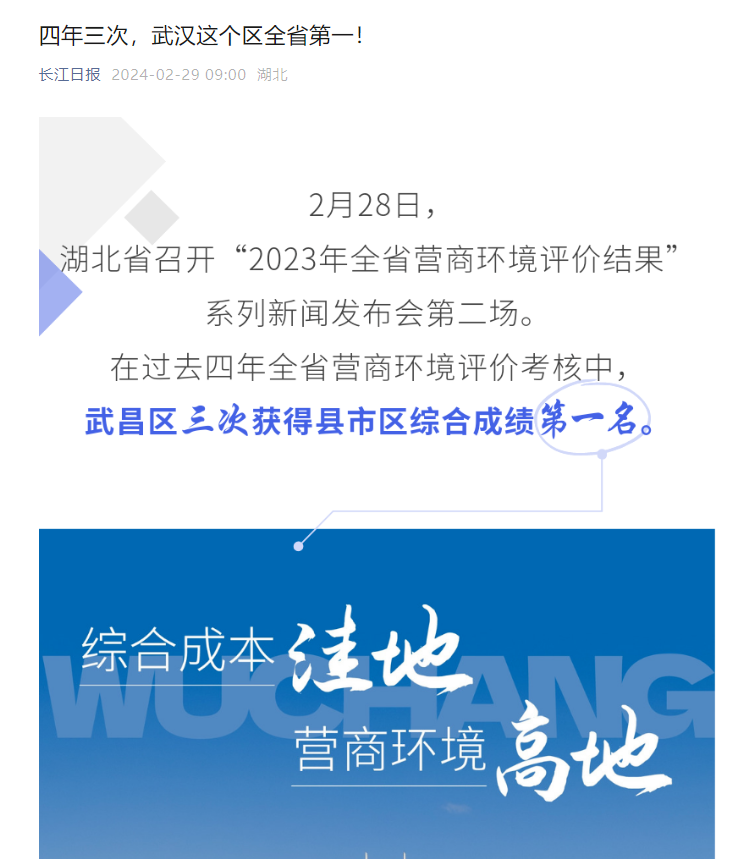 武昌,营商环境排名湖北第一!