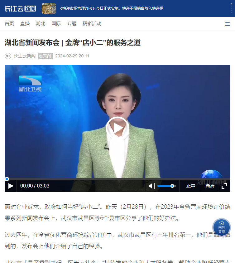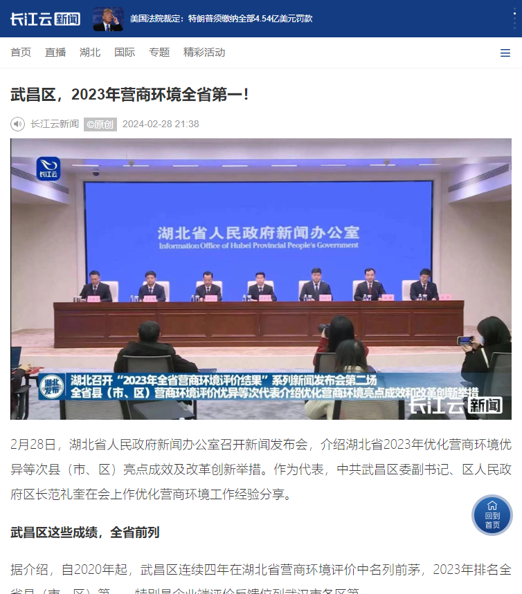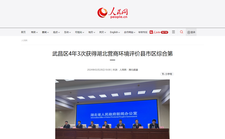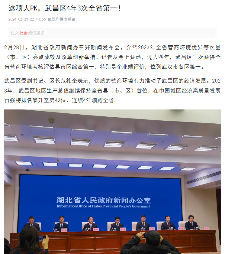 2月28日,湖北省召开“2023年全省营商环境评价结果”系列新闻发布会第二场,武昌区作为县(市、区)优异等次代表介绍优化营商环境亮点成效和改革创新举措。
