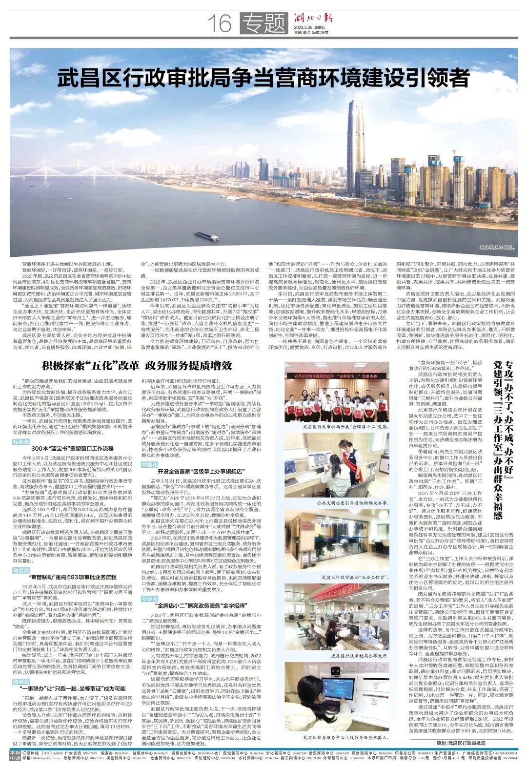 新春伊始,湖北召开2023年全省营商环境评价结果新闻发布会,武昌区再次获得县(市、区)综合第一。“大成武昌”推出《风劲帆满,奋楫笃行,打造武昌营商环境“新高地”》系列推文,展示全区各部门坚持以控制成本为核心,不断创新和优化服务举措,积极打造综合成本洼地,有效提升市场主体的获得感和归属感的经验做法。
