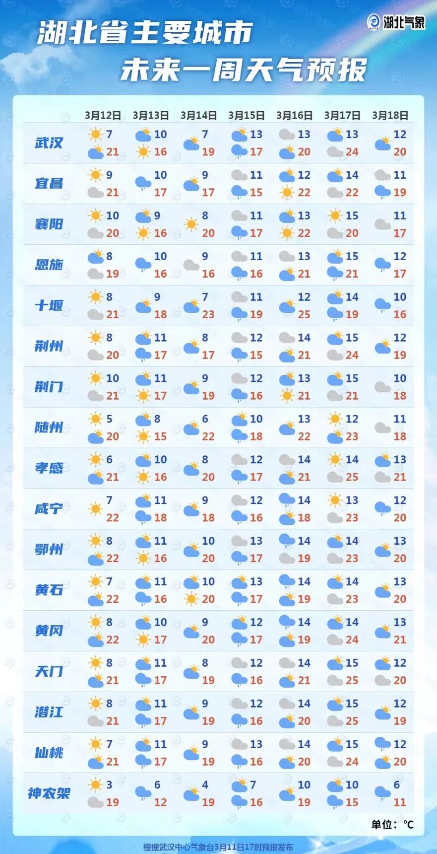 武汉市一周天气预报
