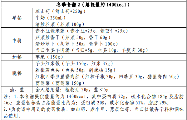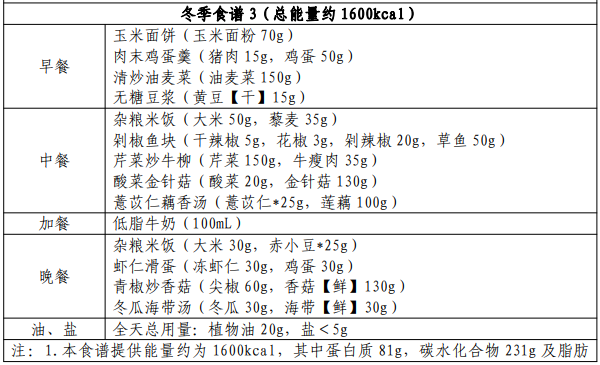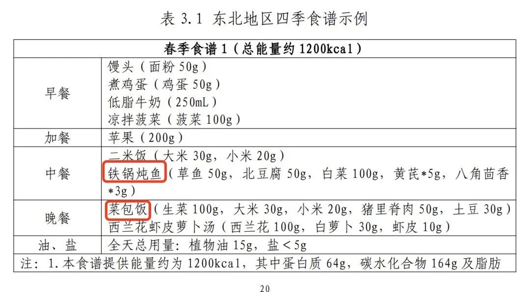 值得注意的是这份食谱细化到了全国不同地区的食谱示例并贴心地备注上了食谱的“总能量”