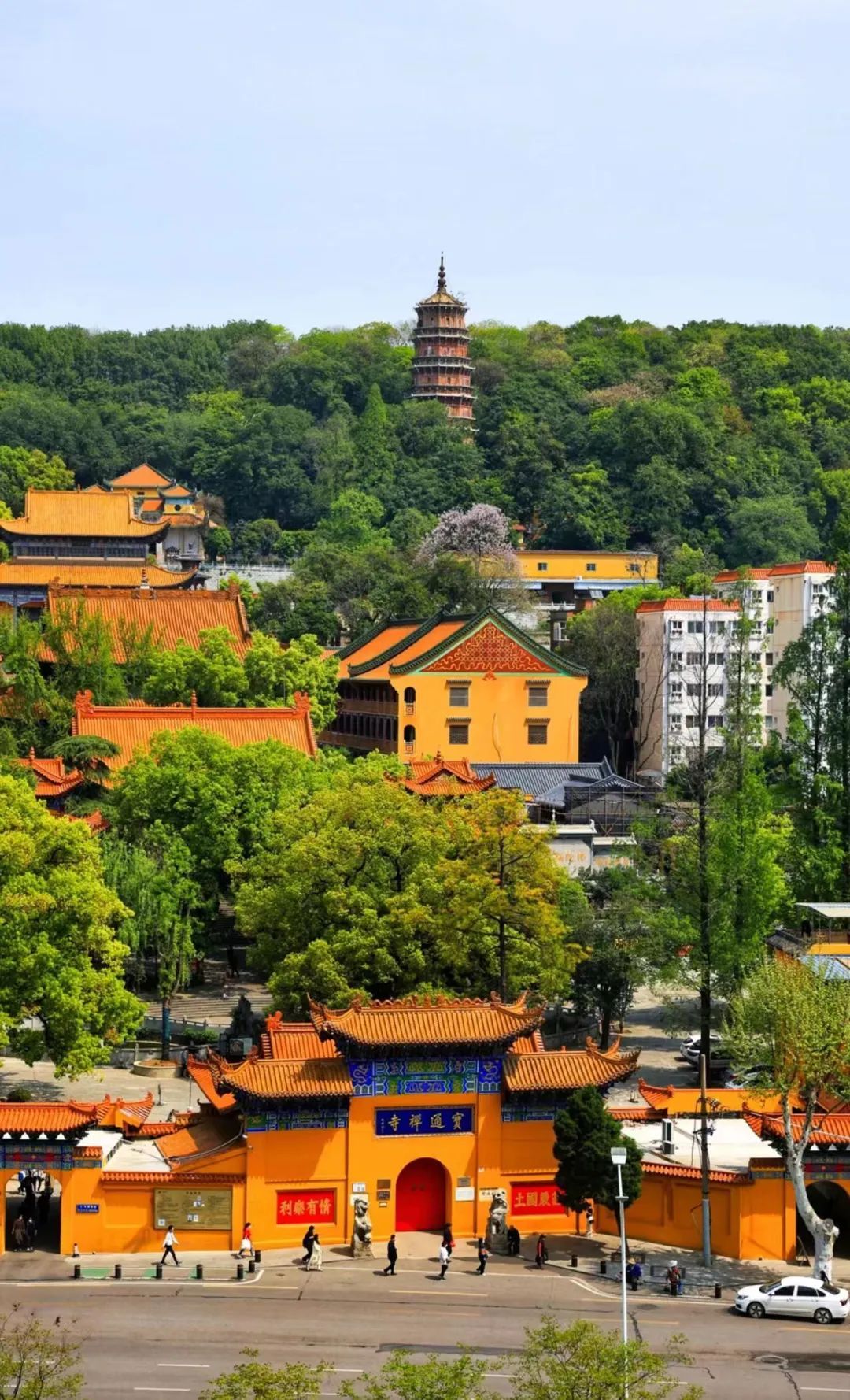武商梦时代对面的宝通寺也是一大打卡点。它是武汉现存最古老的寺院,有1600多年的历史,现在还能看到建筑明显有皇家气派,非常适合穿汉服拍照,很有“故宫同款”意境。