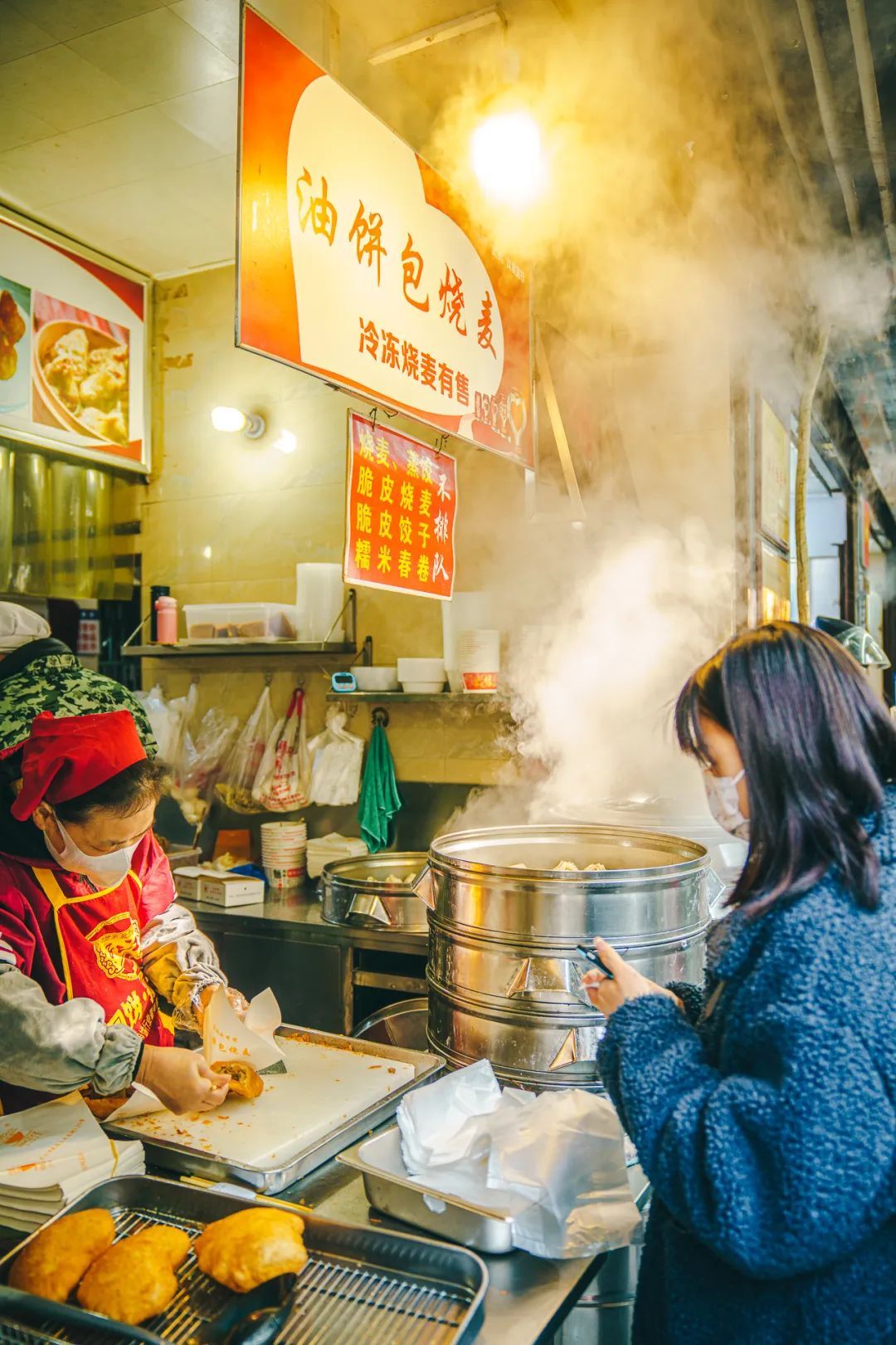 作为新晋人气美食街,粮道街的铁板鱿鱼、油饼包烧麦、熊太婆水饺、拇指生煎包、芒果糯米饭、蛋烘糕等美食吸引全国各地游客前来尝鲜。热闹的街角、花样的美食、鲜美的味道、扎实的分量,都是一碗碗烟火。