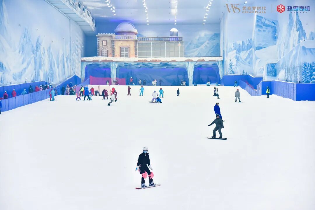 人们在这里,不用出商圈、不用风吹日晒,就能在楚风汉味美食街区尝遍各色汉味美食,吃饱了再去热雪奇迹雪地冲浪,或是去武商梦乐园体验室内过山车等项目,大人、小孩都爱来这里玩。
