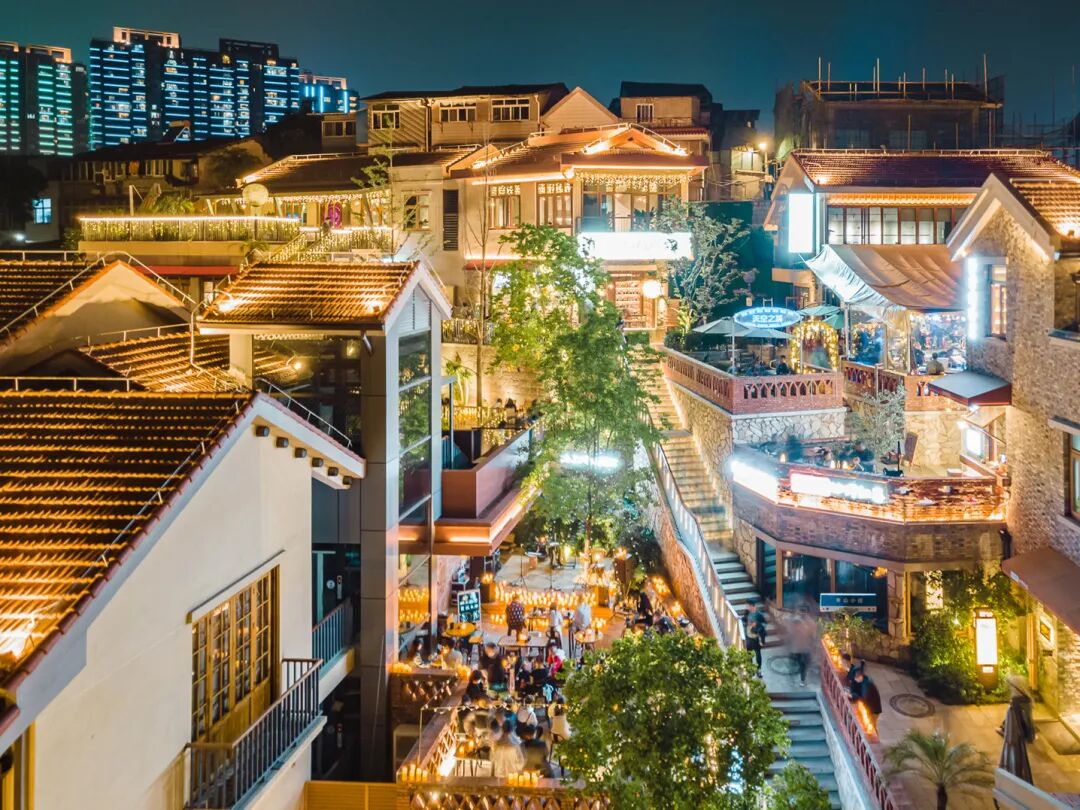 夜晚,灯光亮起,一曲曲民谣从山上随风带到半山腰,烧烤店、咖啡屋、奶茶店、小酒馆、影影绰绰的游人,都是夜晚最亮的星,舒适浪漫。