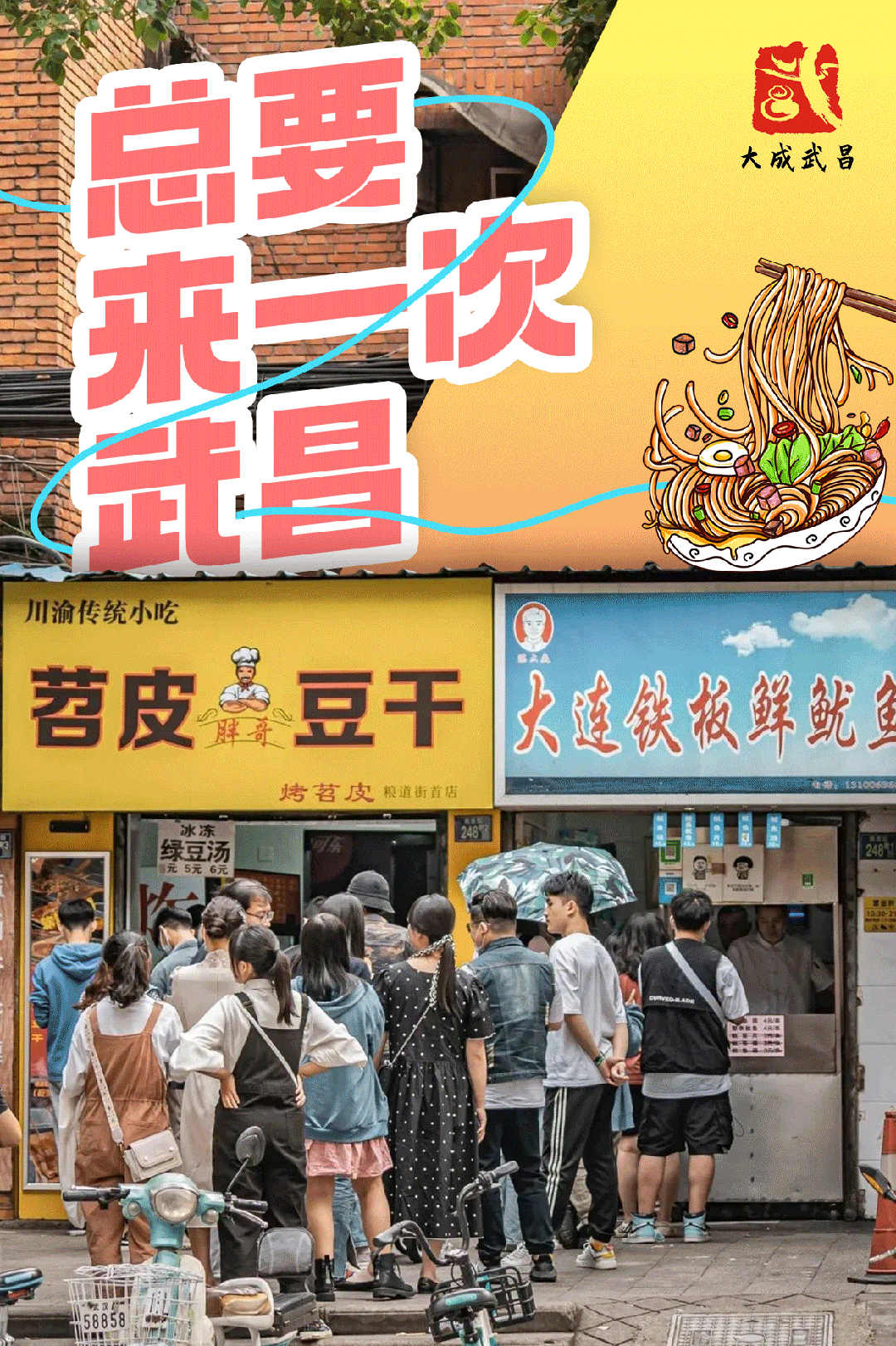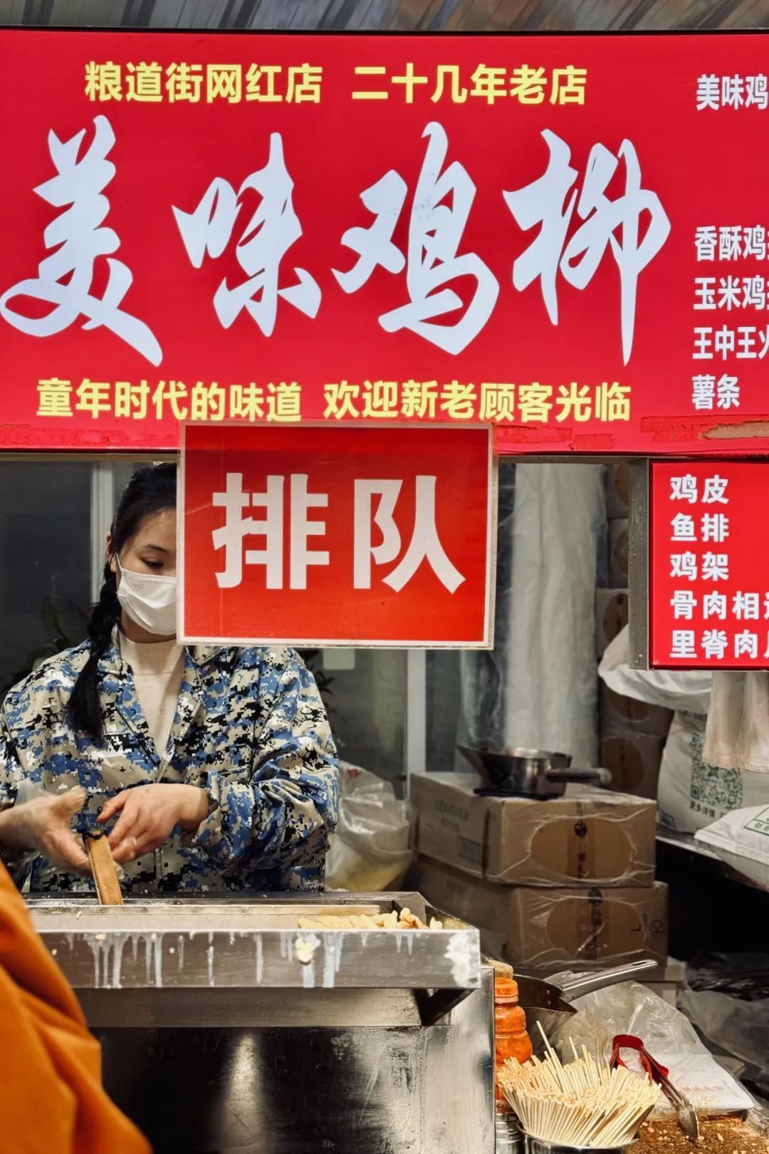 来到粮道街,热干面是一碗都要吃光的、厕所鸡柳是2份起点,烤鱿鱼是吃了5串依旧停不下来的,最后还要来碗桂林米粉溜溜缝……