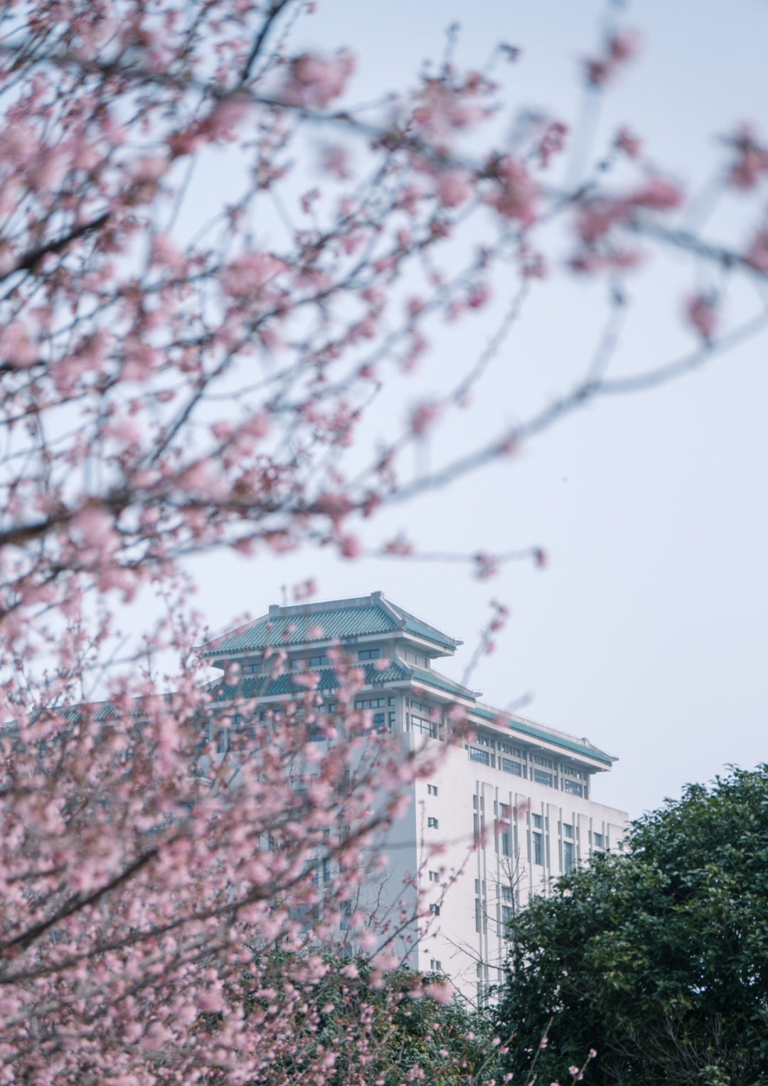 樱花挂满枝头,「樱顶」「珞珈广场」「行政楼」旁,都是不错的樱花出片地。
