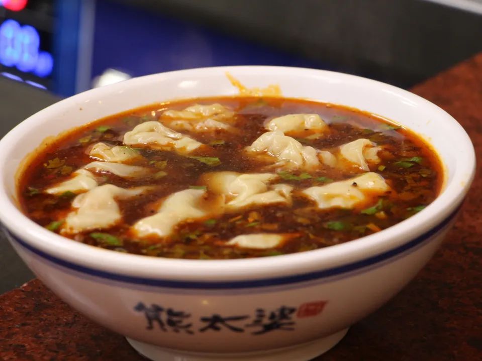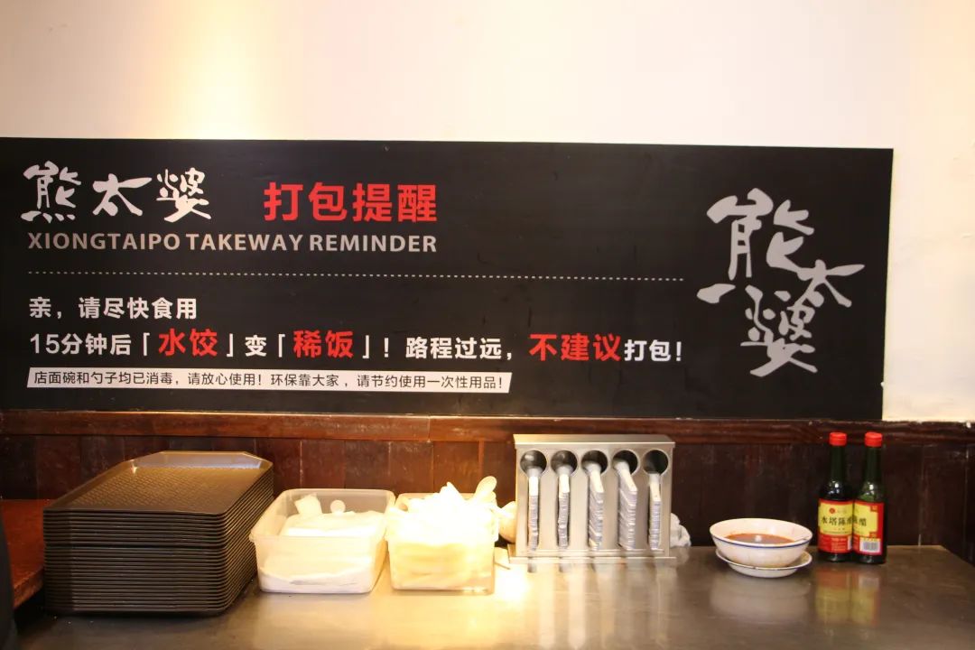 熊太婆家水饺都是手工制作,人力揉面使口感更加柔软。肉馅也是每天新鲜采购,肥瘦调和。最有特色还是用秘方熬制高汤,加上一勺猪油,香气逼人,始终延续着当年走街串巷的味道。