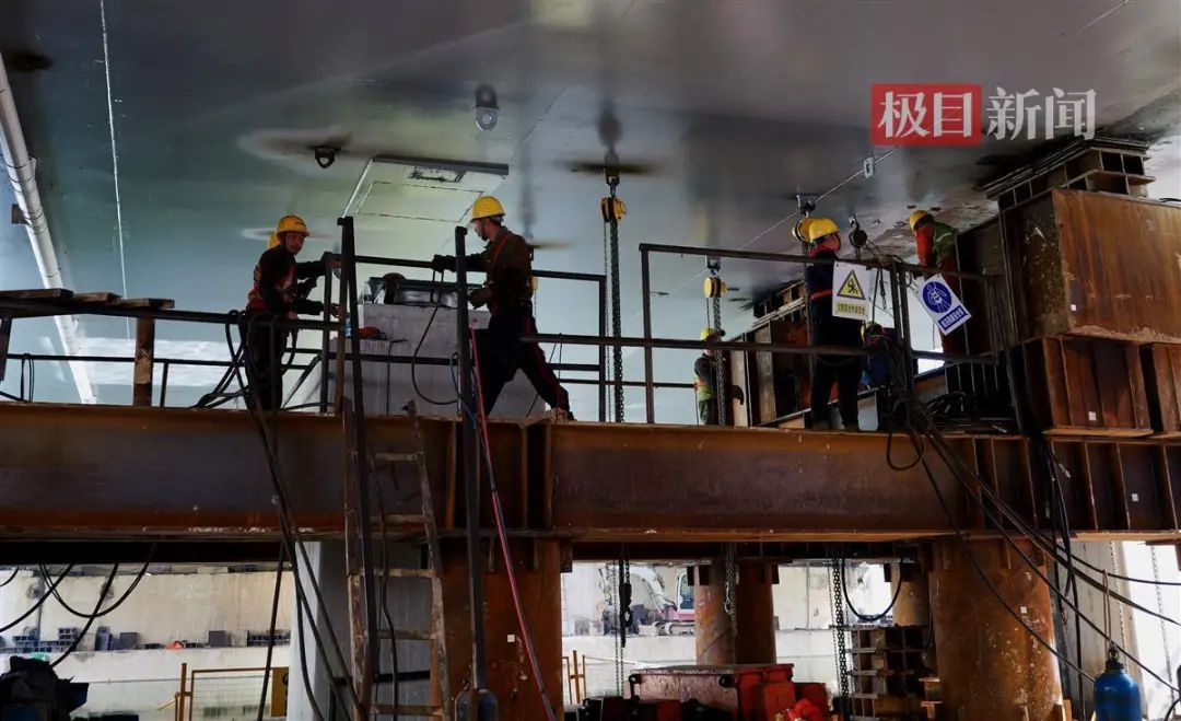“我们将48.8米的深基坑分9层建设,目前正在进行基坑开挖、主体结构施工,已开挖至地下35.8米深处,预计5月完工。”该项目总工程师于海生介绍:“与此同时,我们的盾构机已实现隧道掘进过半,累计掘进尺2306米,将于11月份穿越区间风井。”
