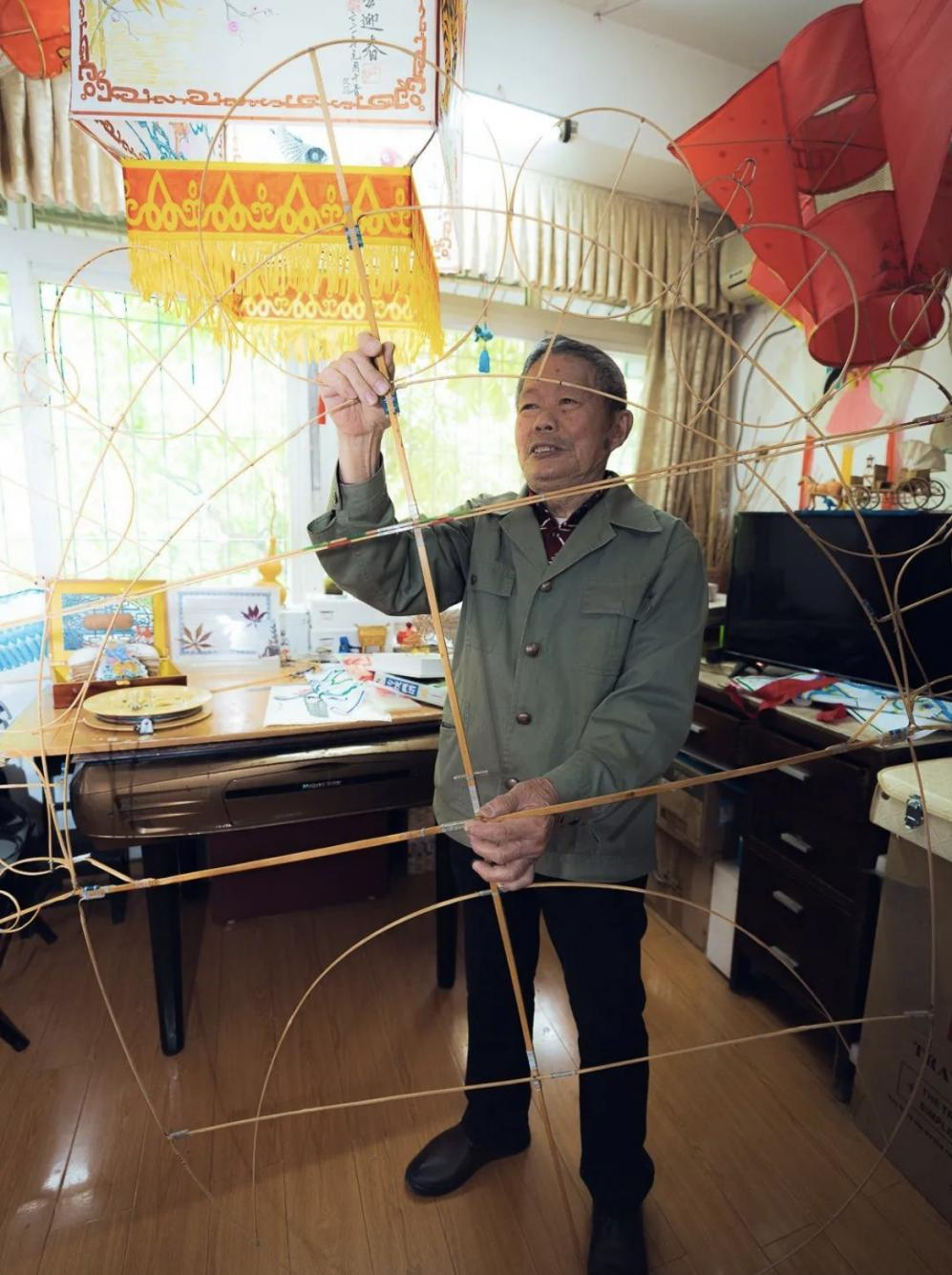 ▲篾扎风筝传承人、武汉风筝大王、江湖人称“武汉风筝陈”的陈士荣老先生