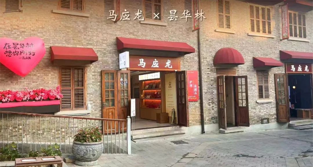 马应龙体验店在茶颜悦色背后,店里有许多产品在售卖,眼霜、眼膜、眼罩、痔疮膏等等。