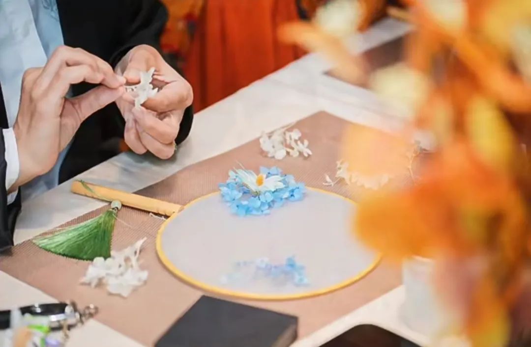 鲜花团扇通过现代的手工创意和技术,对传统团扇文化的继承和发扬。白绢作面,檀香作圈,鲜花点缀,是樱花季花好月圆、团团圆圆的美好祝愿呀。