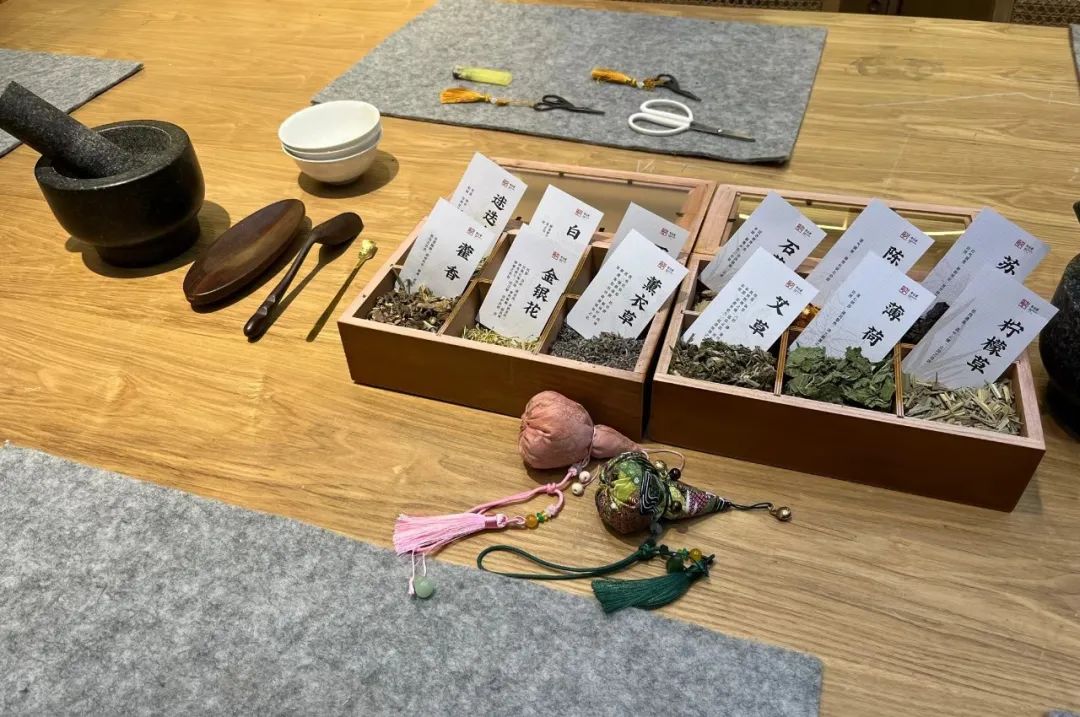 店内还有香囊制作体验区,让游客们近距离了解非遗之美和中医药之美。目前,游客购买2盒樱花限量款眼罩,可以免费领取一个手作香囊。