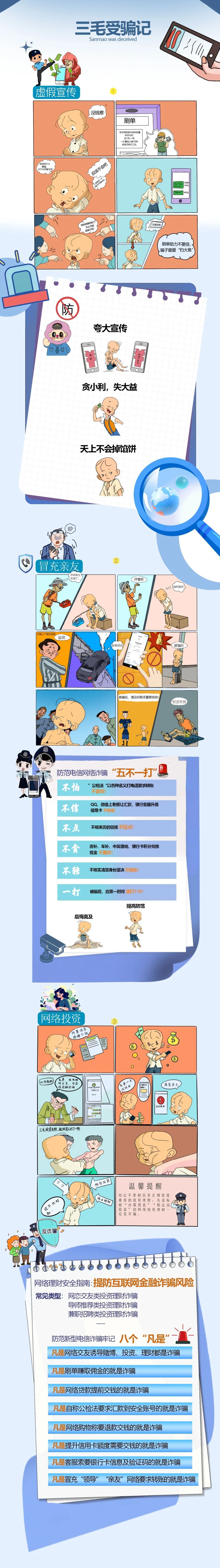 大家一定要提高“反诈防诈”安全意识,在生活中擦亮眼睛,注意自我保护,不要做“三毛受骗记”里的三毛。