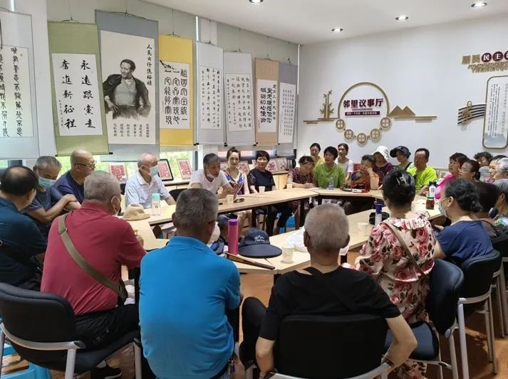▲武昌区南湖街道华锦社区的居民代表和社区干部在邻里议事厅议事