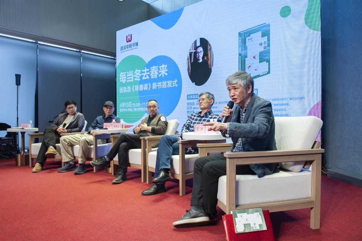 4月13日,由武汉市文联、长江文艺出版社联合主办,武汉作家协会、武汉市文艺评论家协会、武汉中心书城联合承办,湖北广播电视台“遇见好诗歌”协办的“每当冬去春来——张执浩《咏春调》新书首发式”在武汉中心书城举行,分享了著名诗人、武汉市文联副主席、武汉文学院院长张执浩在获得鲁迅文学奖之后推出的最新诗集。作家、武汉市文联副主席舒辉波,诗人、长江文艺出版社副社长沉河,分别代表武汉市文联和长江文艺出版社先后致辞。