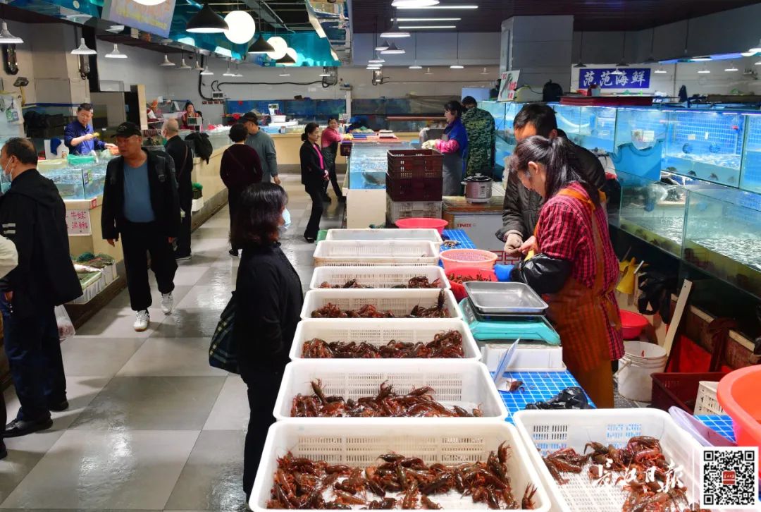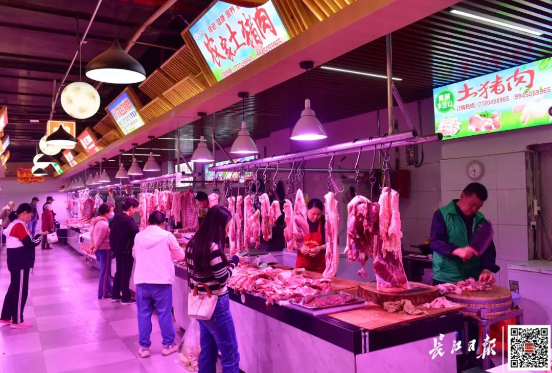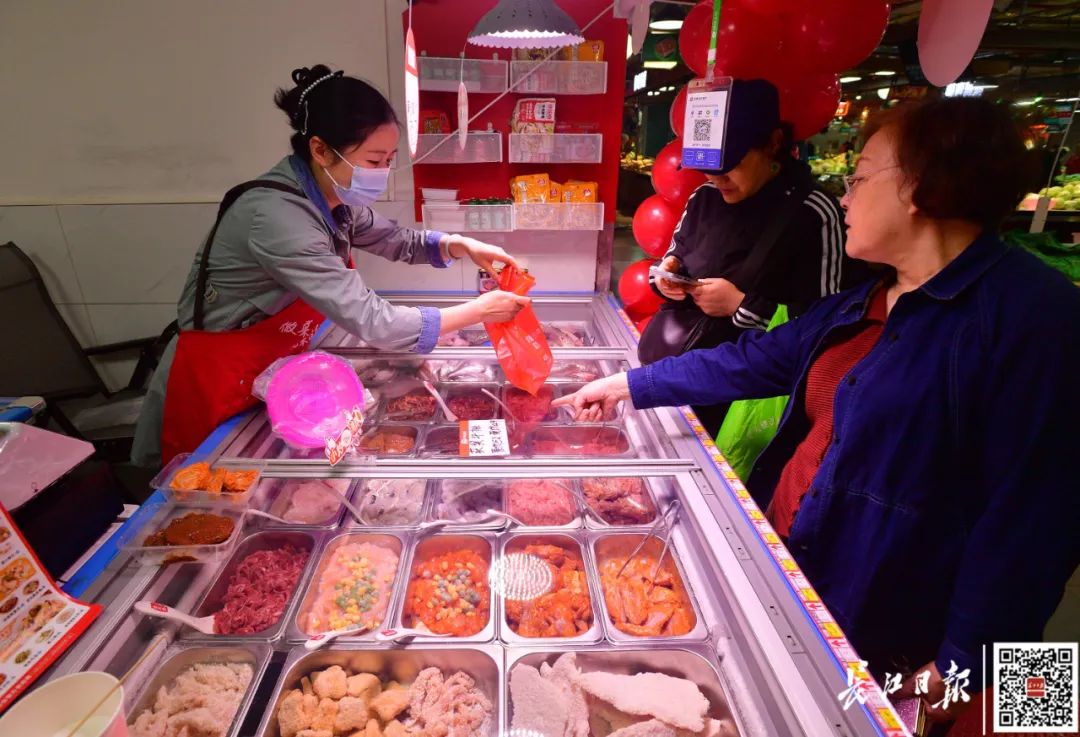 菜场蔬菜区悬挂着“知蔬达礼”“博览群蔬”“蔬香门第”等谐音创意招牌。