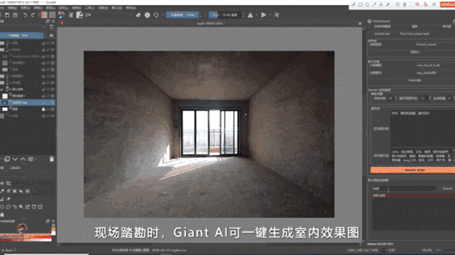 目前,AI辅助设计已应用于武汉警官职业学院新校区、天门石家河遗址博物馆、陕西省政务和公安大数据中心等省内外多个项目。在“Giant AI”加持下,上述大型复杂场景渲染制图时长,由过去3至5天,缩短到4小时以内。