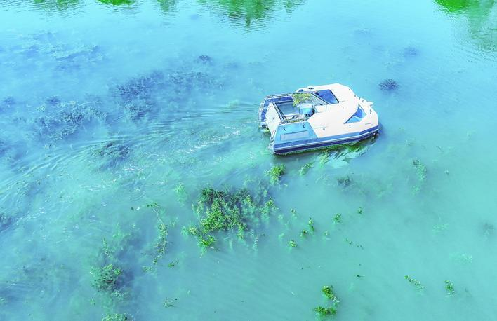 “今年开春后,因天气原因,水草比往年长势旺盛,外沙湖的5只无人船帮了大忙,人歇船不歇,大大提高了水草收割效率。”武汉市武昌区湖泊维护站副站长王聪介绍。