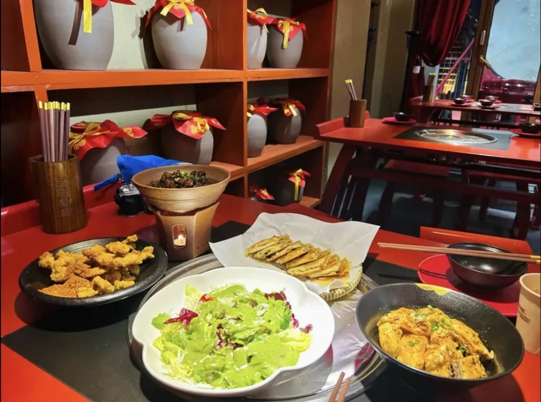 昙华林三期新开的「三国鼎食」,是一家以三国英雄故事为主题的特色餐厅,包含围炉煮酒、碳火烤肉、英雄食肆、英雄小剧场四大特色玩法,体验对酒当歌、大口吃肉英雄豪情的同时,还有三国英雄人物轮番出场的小剧场,热闹非凡。