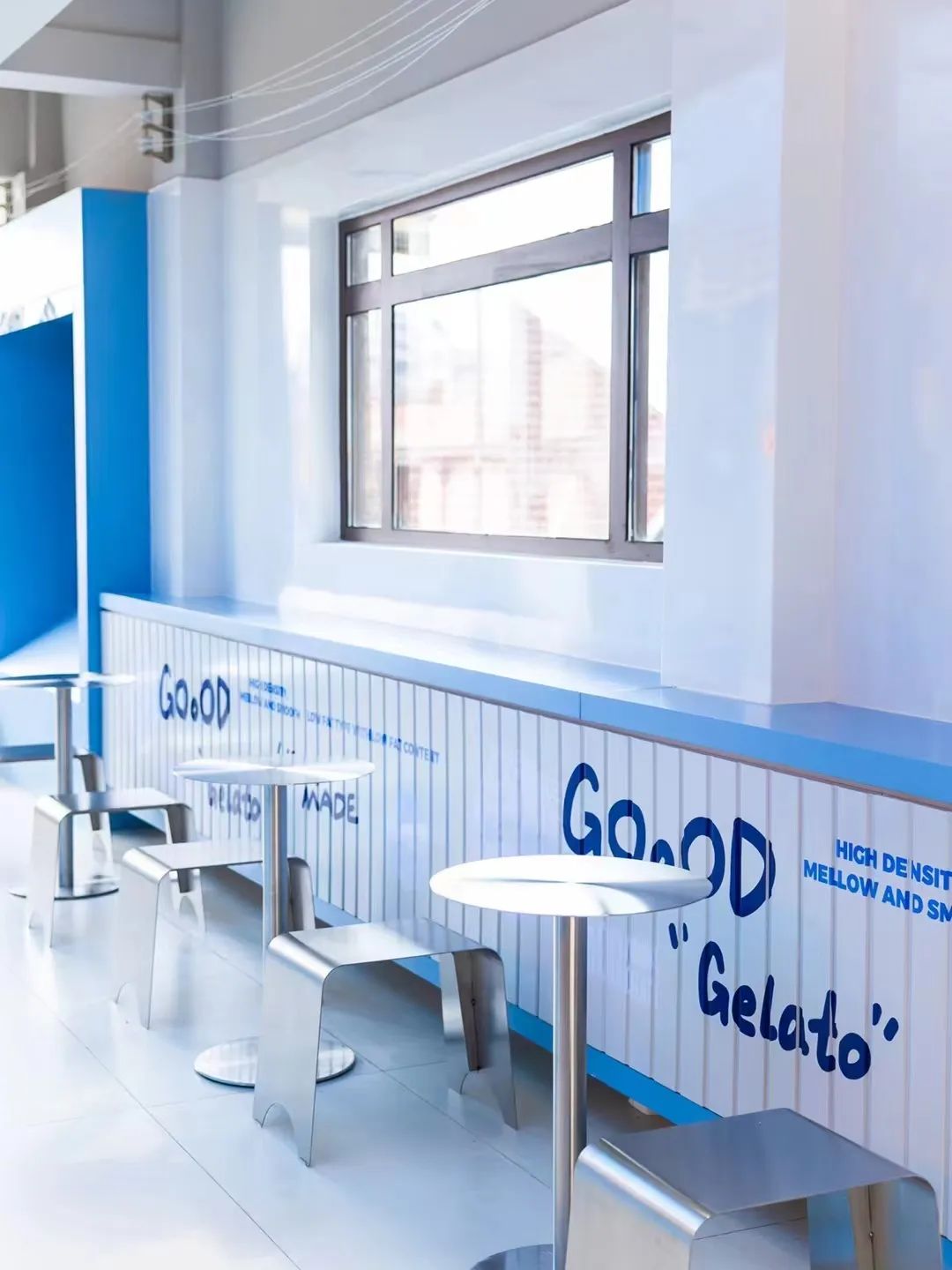 「GOoOD Gelato冰淇淋」是一家以蓝色调元宇宙为主题风格的意式手作冰淇淋冰淇淋门店,本店以进口的原料和当季水果新鲜制作,同时也是一家宠物友好店,带狗狗进店消费可以免费获赠小狗冰淇淋一份。