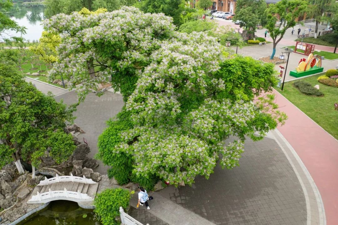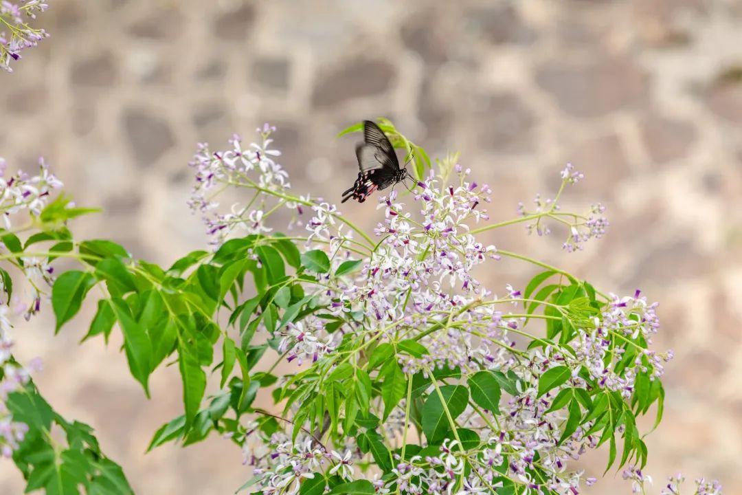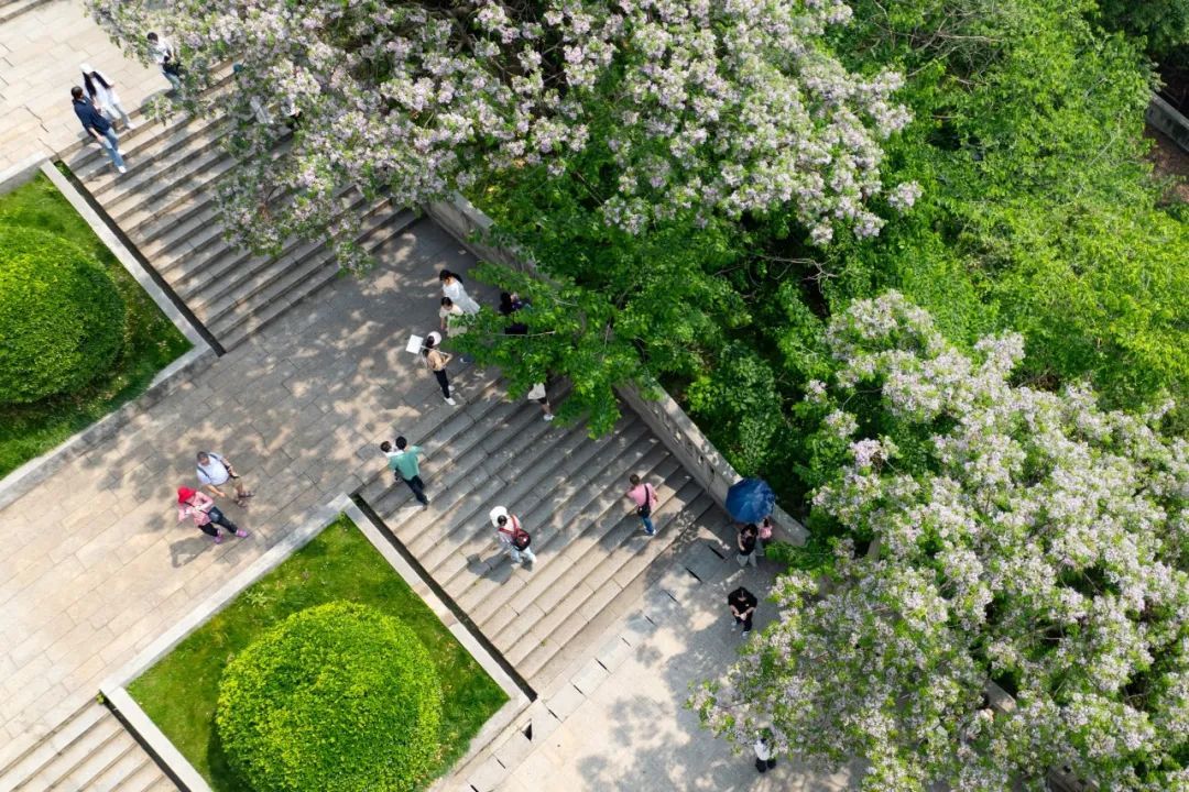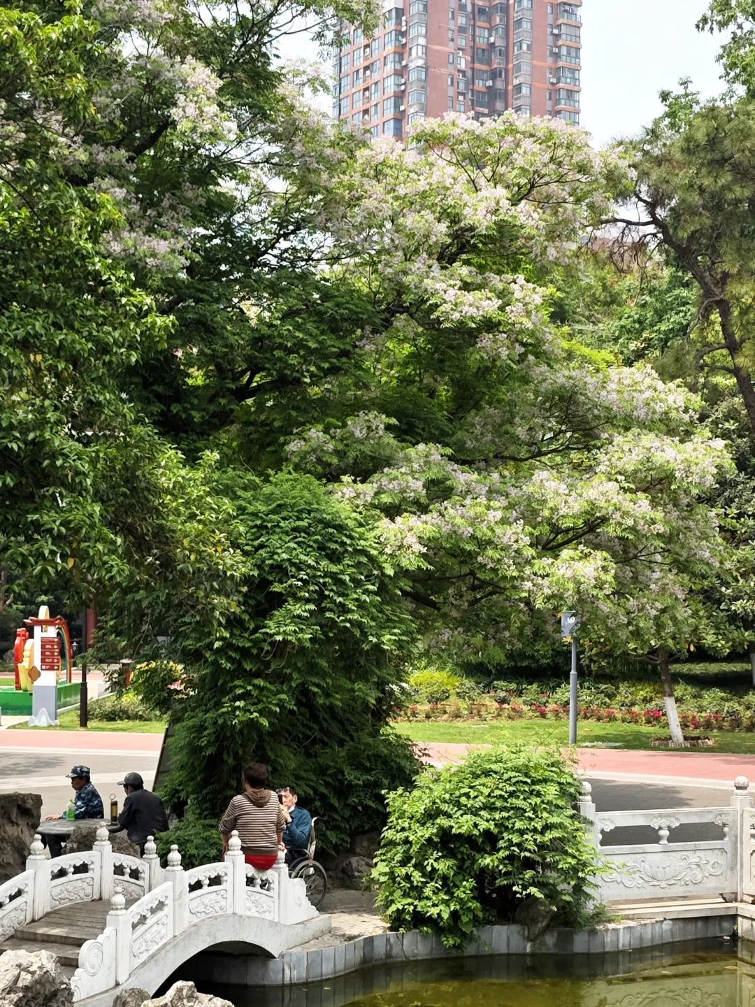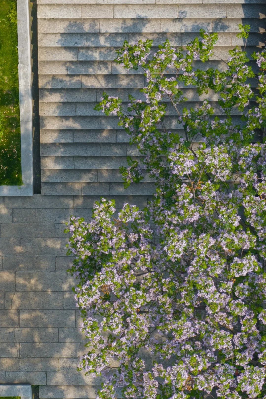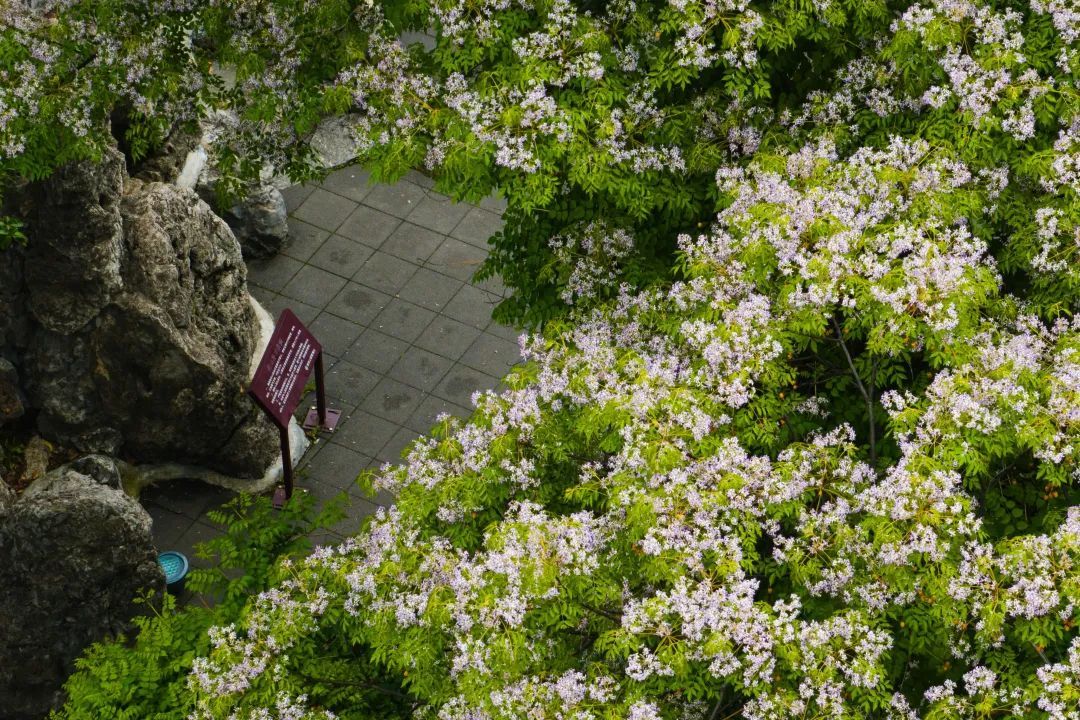 ????紫阳公园假山旁的苦楝也是花开正盛,非常适合一家人游玩拍照。