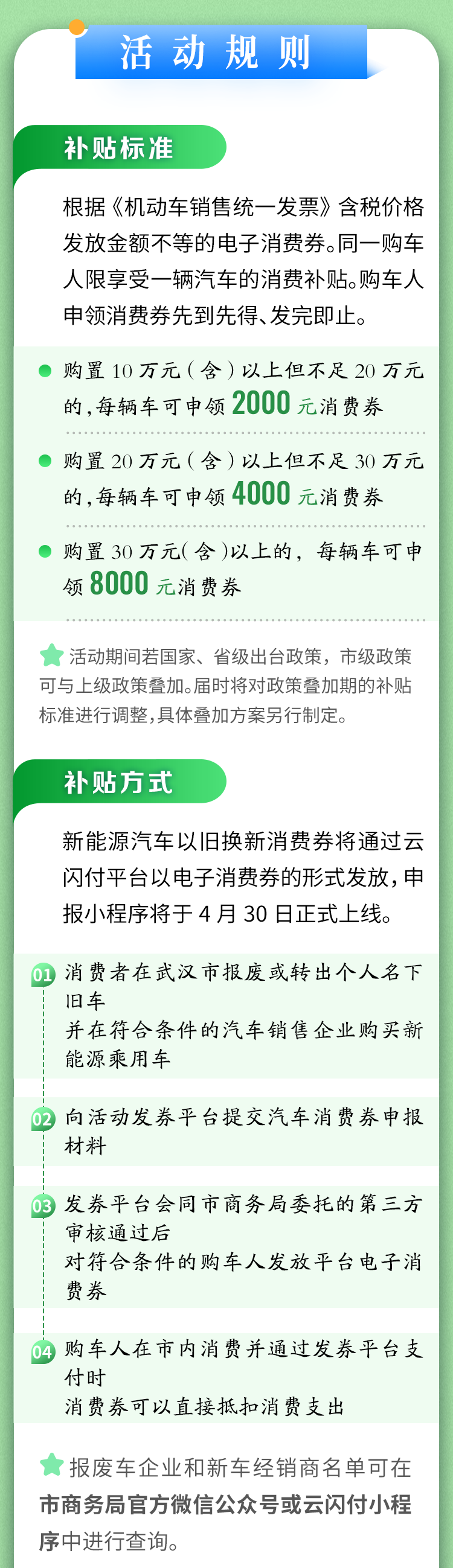 此次以旧换新活动聚焦“去旧更便利,换新更愿意”的活动主题,围绕汽车和家电家居两大板块,以发放消费券的模式组织开展。其中,汽车板块重点围绕新能源汽车,家电家居板块重点围绕绿色智能家电家居。资金规模分别为2000万元、3000万元。