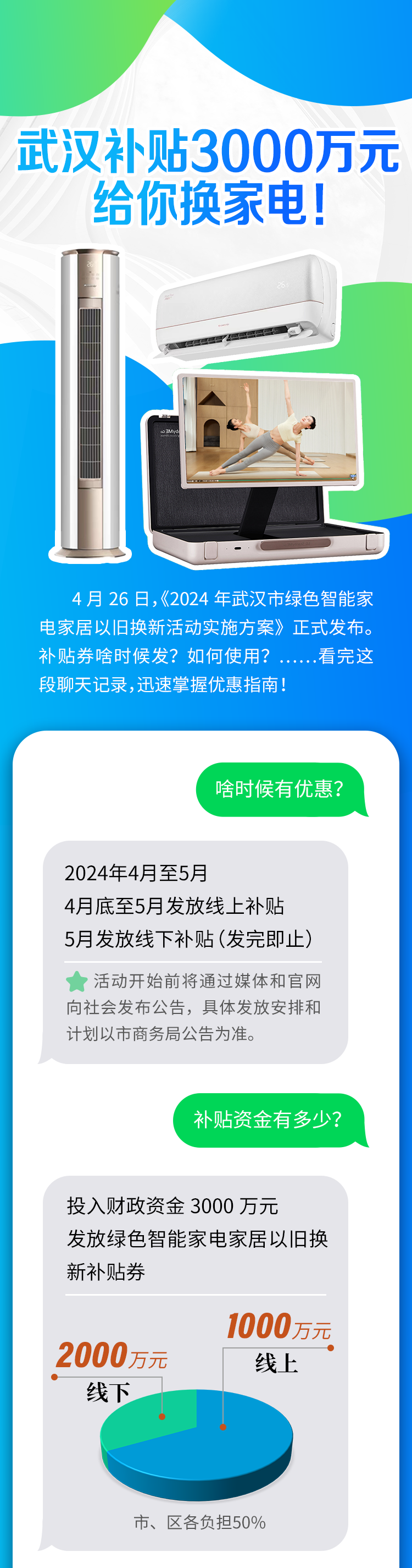 武汉市家电家居消费品以旧换新活动将通过“线上+线下”联动发力,分两期活动开展。