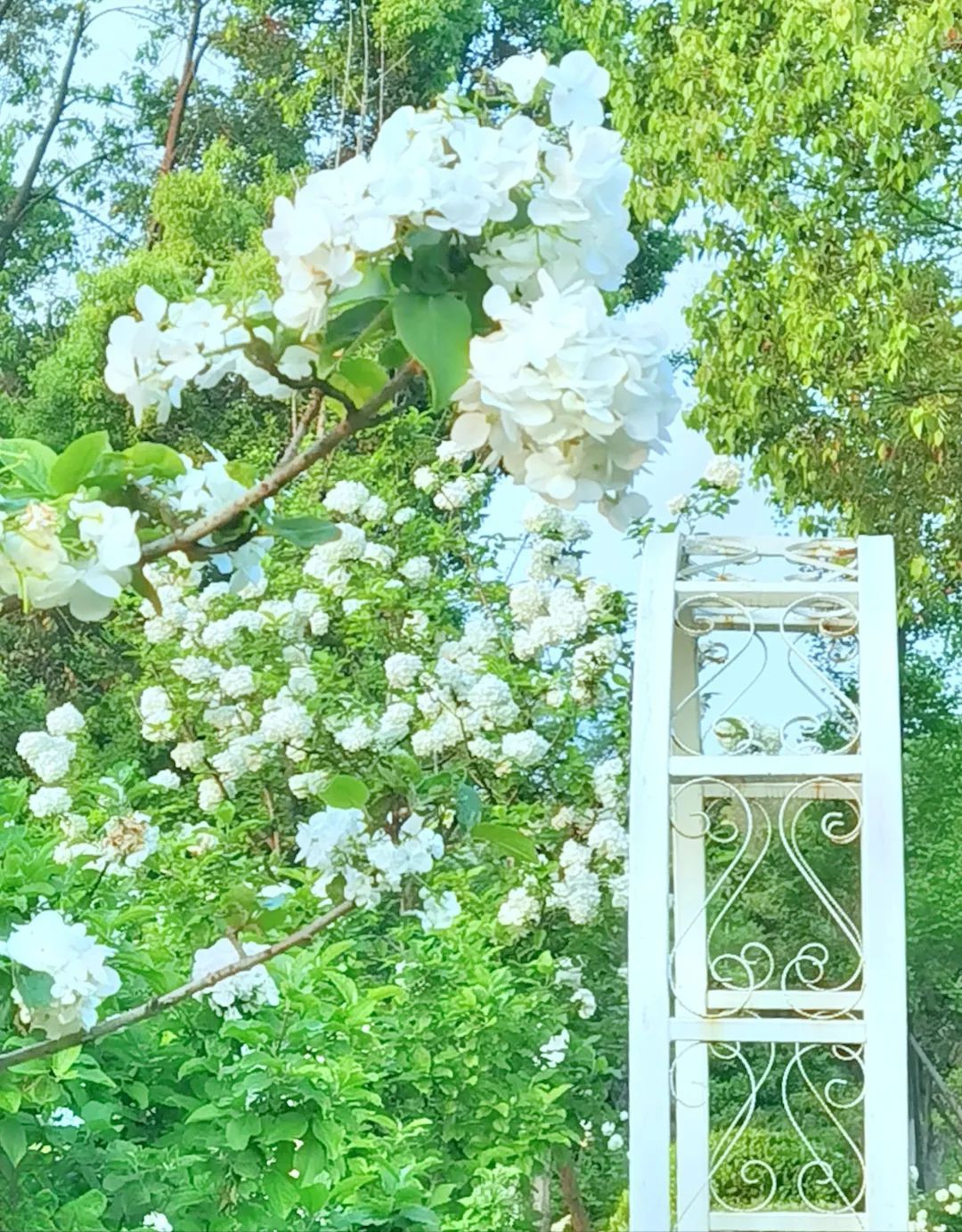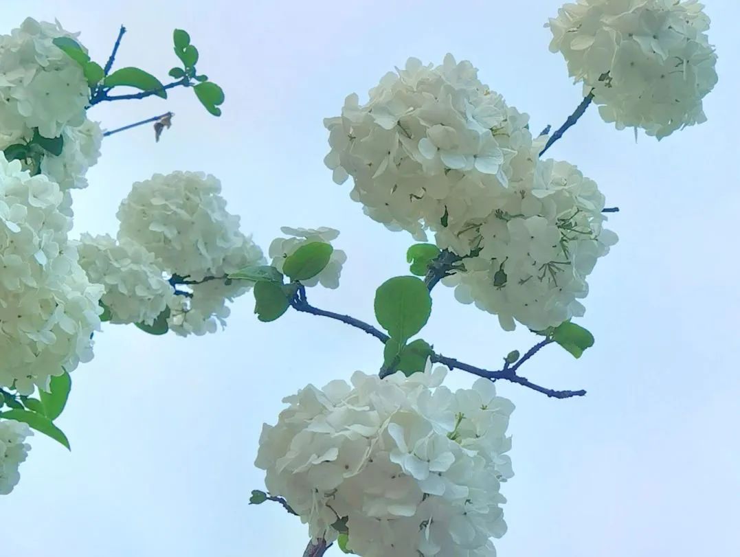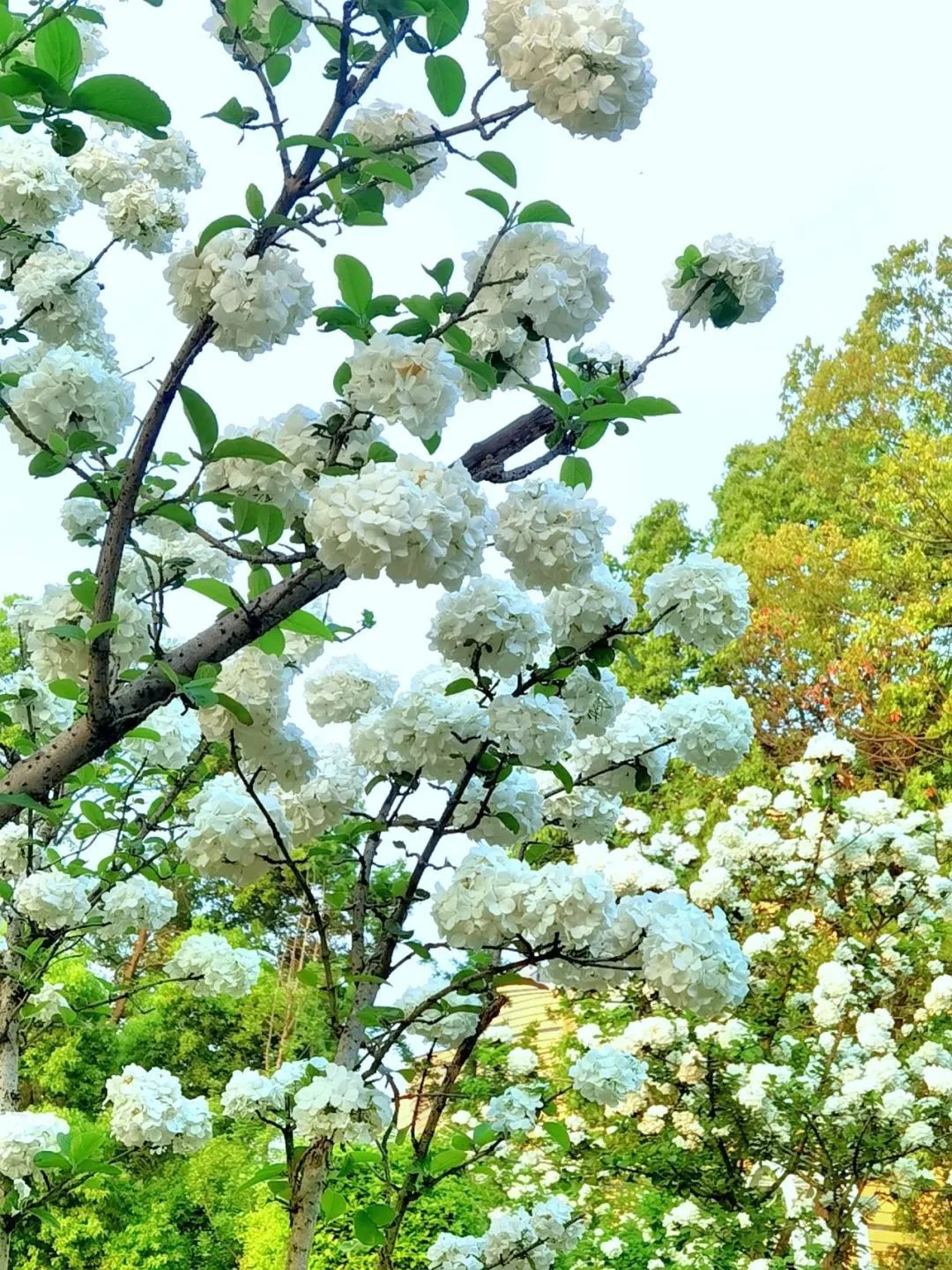 一簇簇白绿色的小花团成大朵绣球,在湖畔、在路边、在枝丫……在眼前绘就了一幅清雅的画卷。