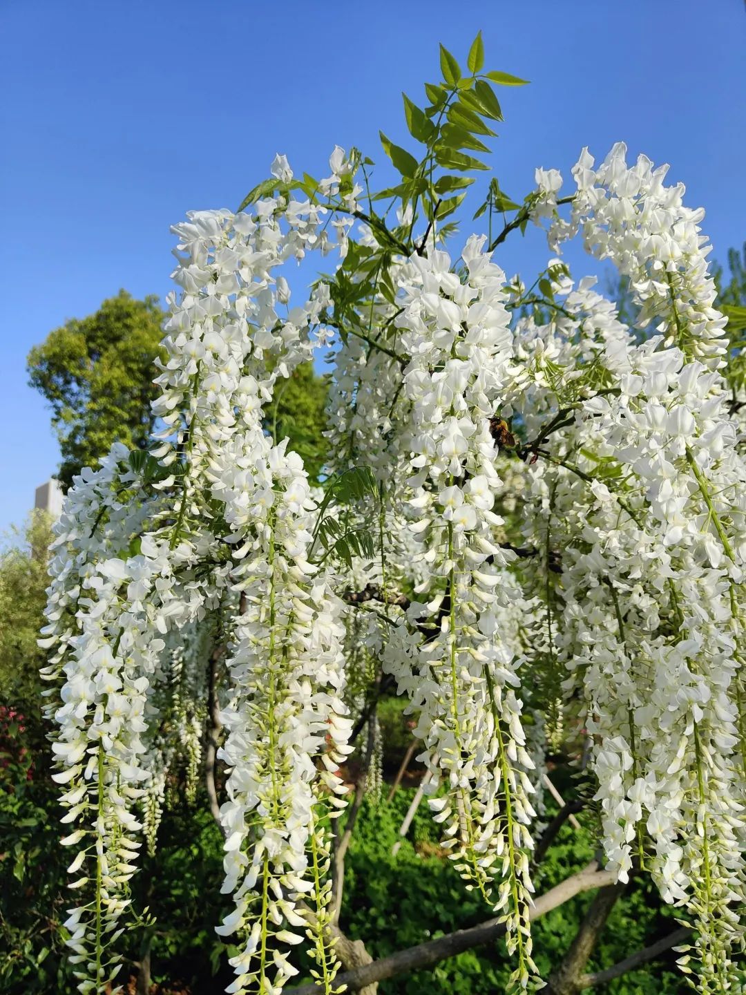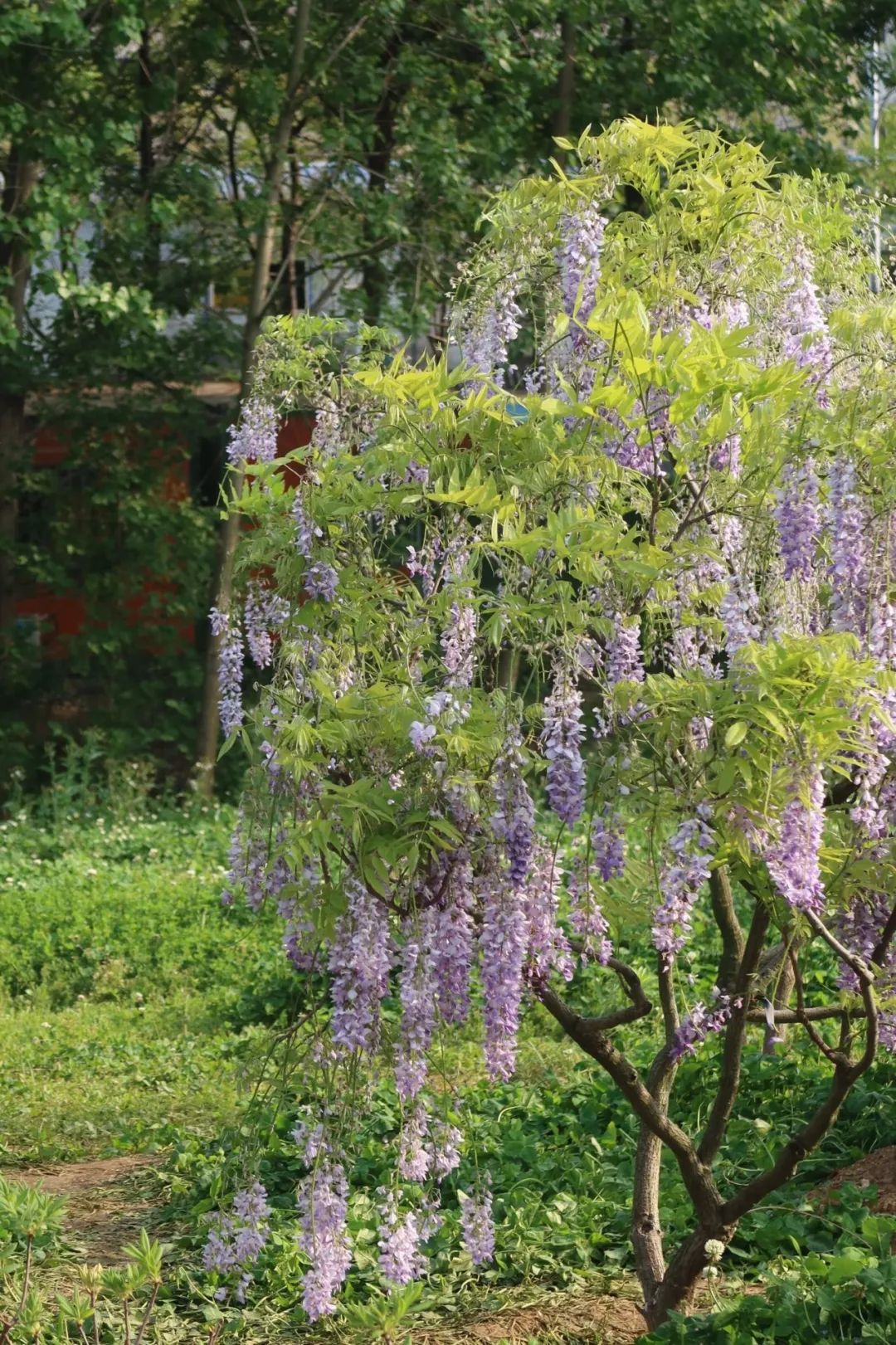 垂落的花穗犹如珠帘,长短不一,配合着层次丰富的绿化带,仿佛童话世界。