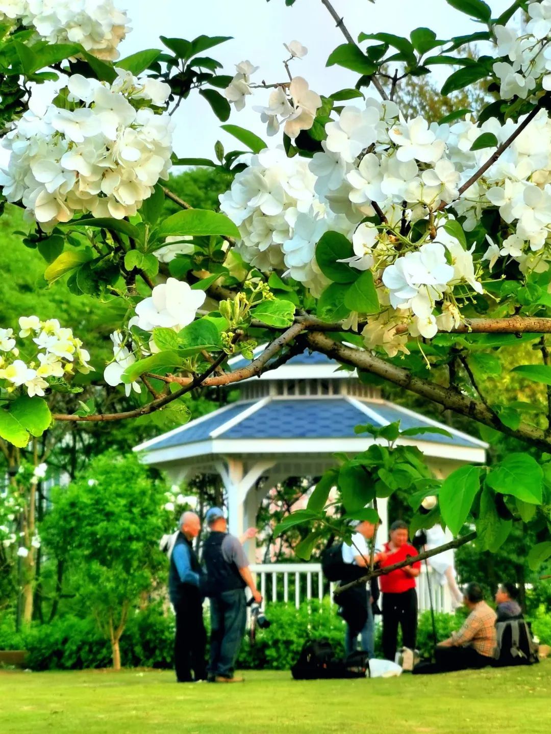 在武昌寻找绣球花的踪迹,沙湖公园是不二之选,大片的绣球花开得恣意热烈,虽然颜色清浅,不似郁金香般颜色浓烈,但是大团大团的绣球花美得清冽动人,是武昌春日最清新自然的味道了。