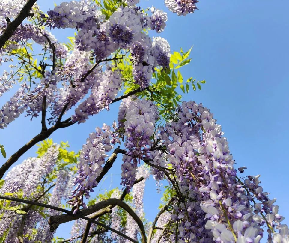 漫步沙湖公园,一不小心就会误入花海,恣意生长的紫藤花开满了枝头,让人不经意间撞个满怀。
