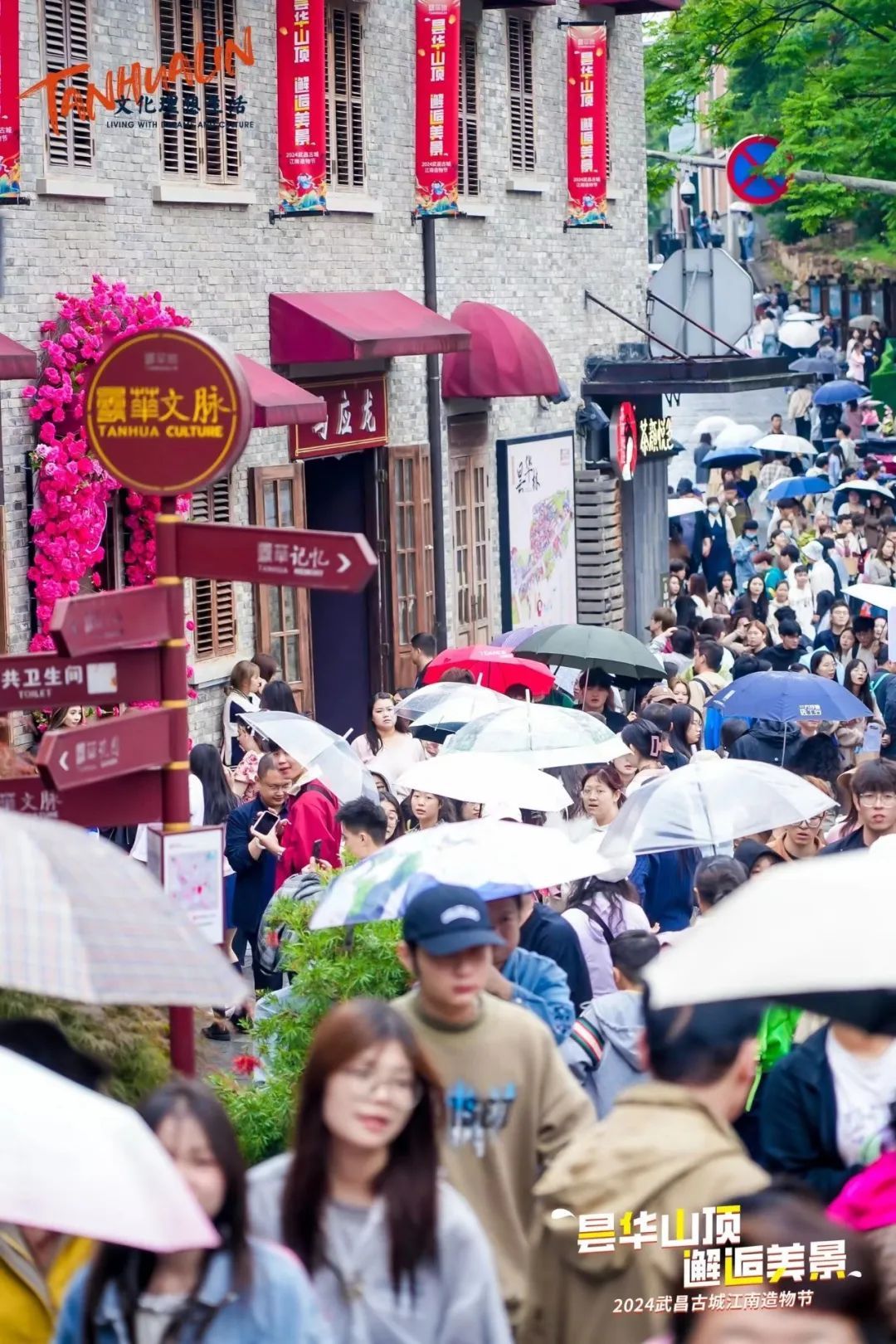 游客打着雨伞逛昙华林。昙华林公司供图