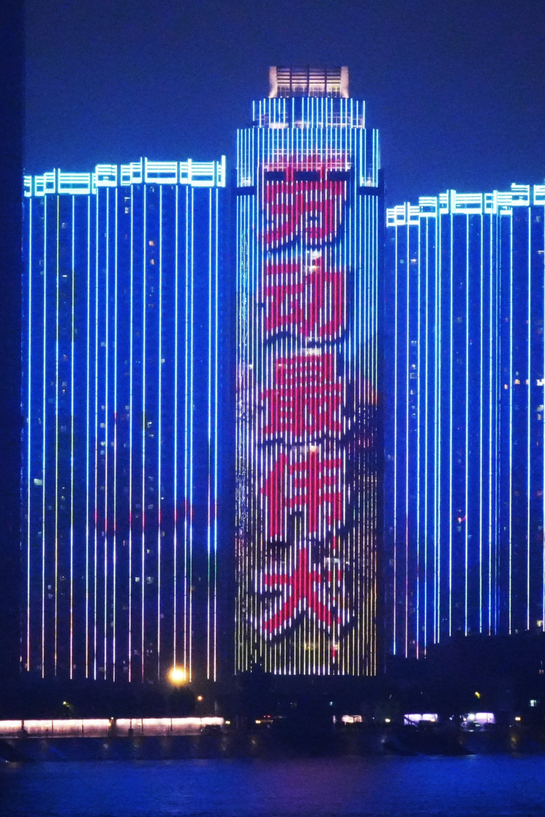 绚丽的风光秀点亮沿江的上千栋楼宇