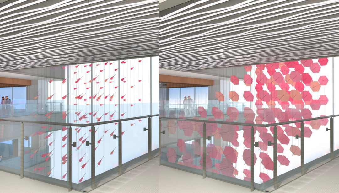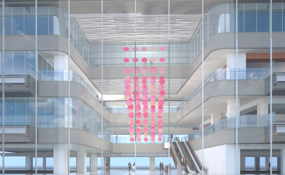 ☉樱花唱诗Twilight Blossom艺术雕塑(概念图),运用先进AI技术与数字编程技术结合武汉「樱花」元素以长江流域时间与生命形态为灵感打造展新万象之美。