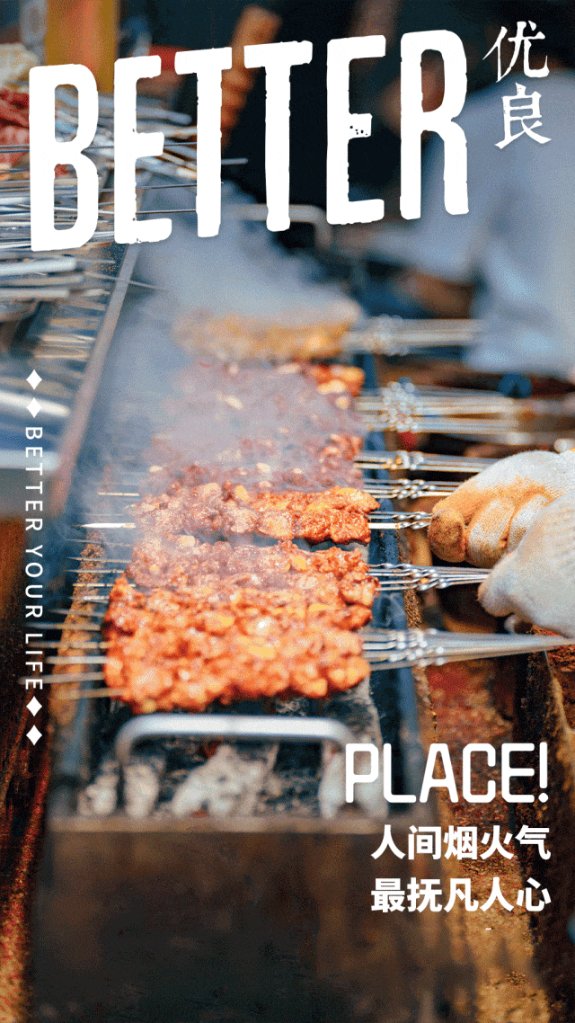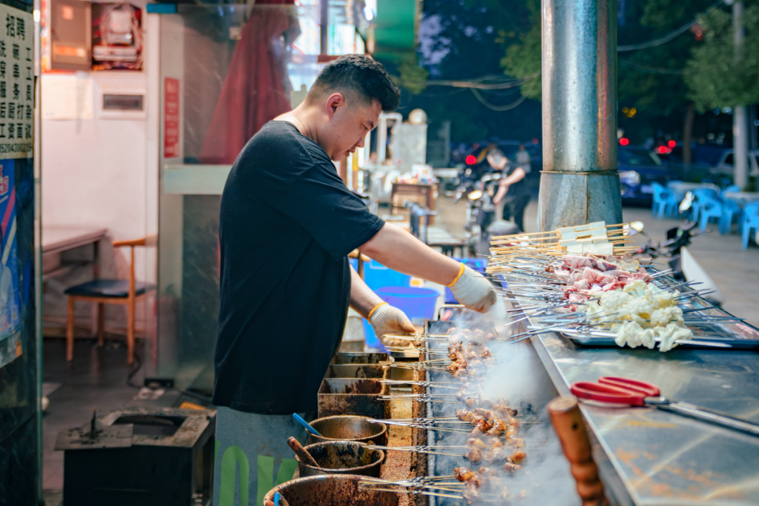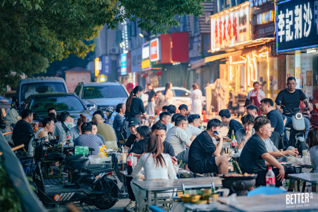 早上放凳子上嗦面,晚上在桌子上撸串。太阳周而复始地升降,人行道上永远不缺热闹。