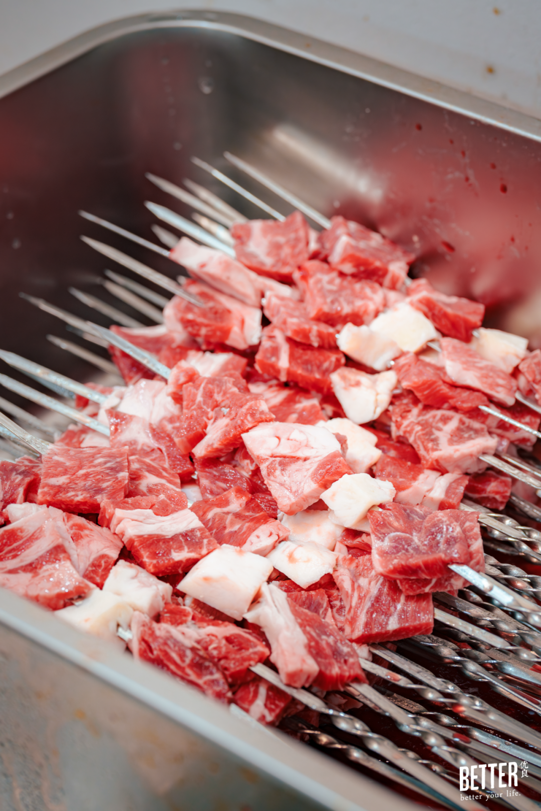 “你就看这一盆牛肉上的雪花,漂不漂亮。我们的食材成本是能够直接吃出来的,虽然菜单上面一串牛肉的价格是6元,但利润非常薄,我们就是凭良心做事,只赚该赚的钱。”
