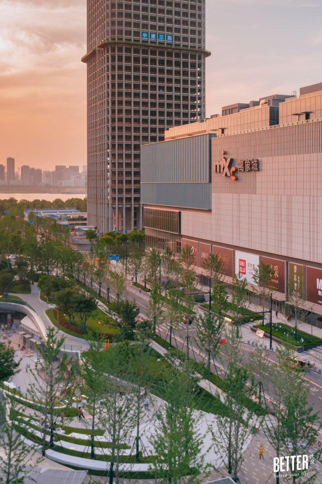 说起来,在武汉临江而建、灵感取自于“江”的建筑数不胜数,但如此让渡于自然的,印象里,武昌万象城倒是第一个。