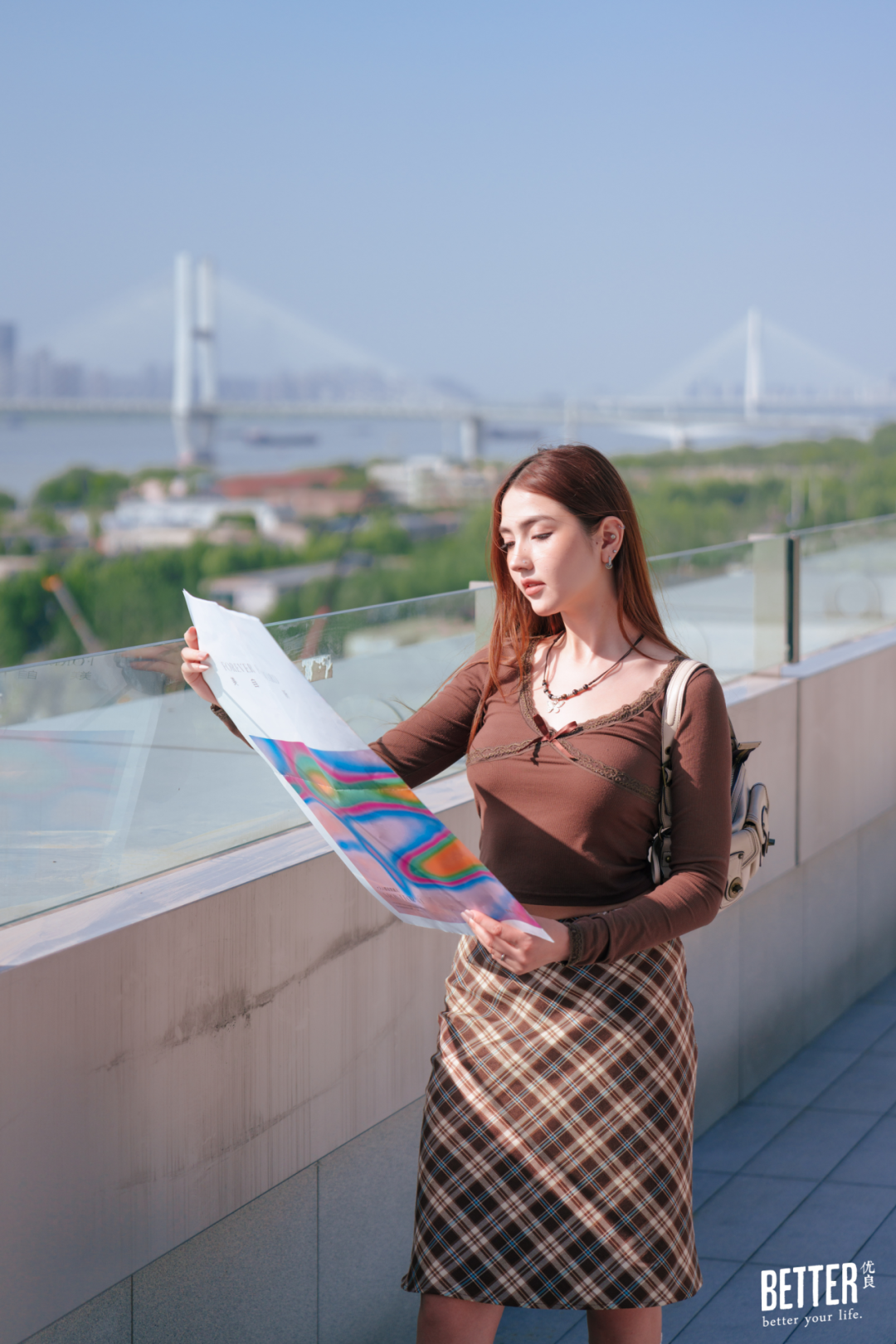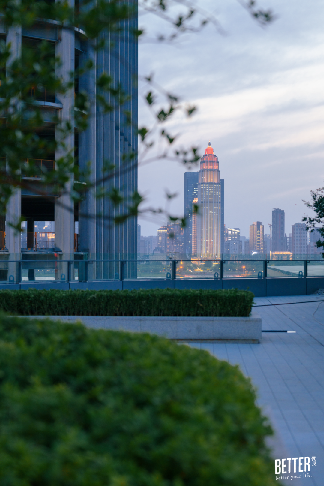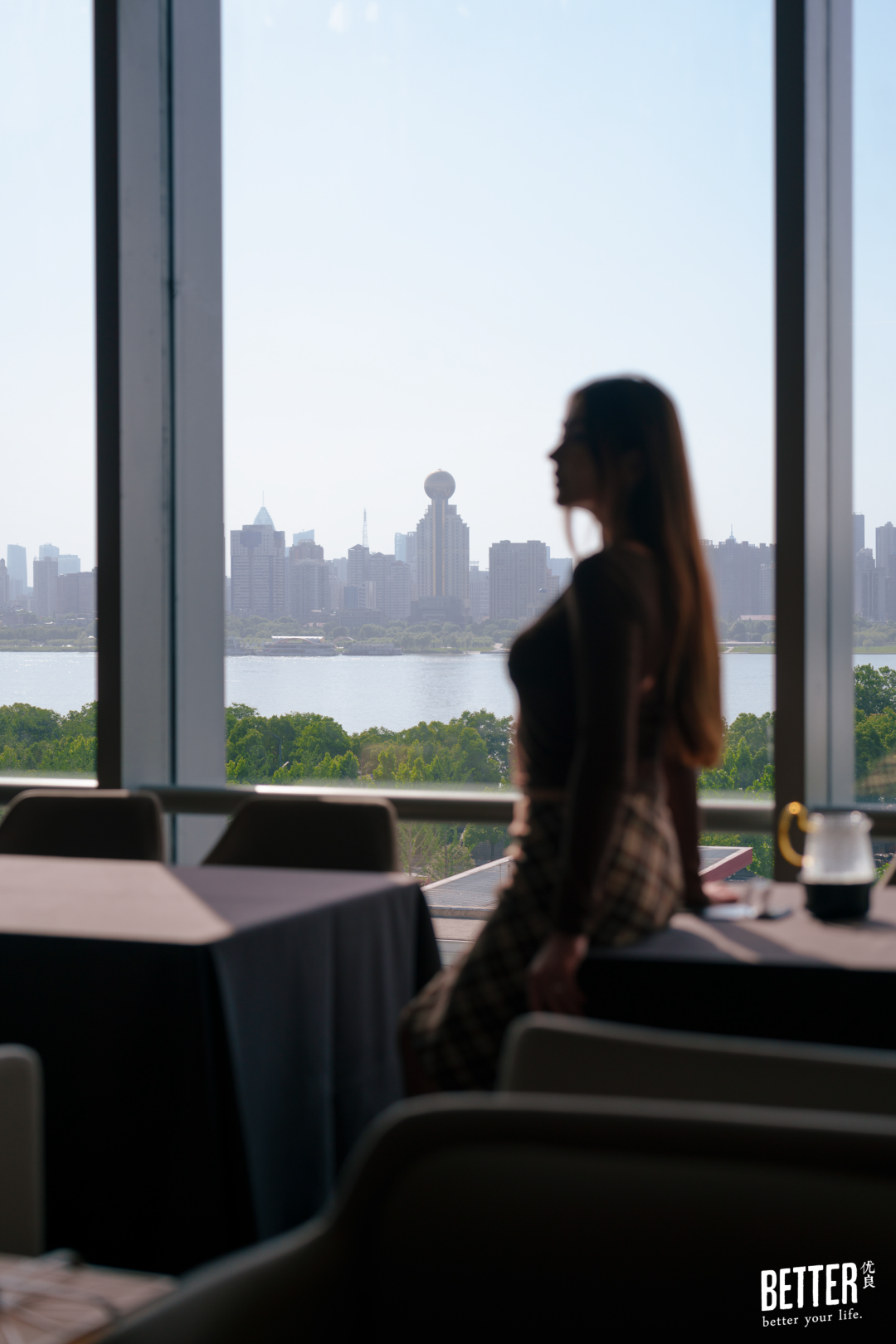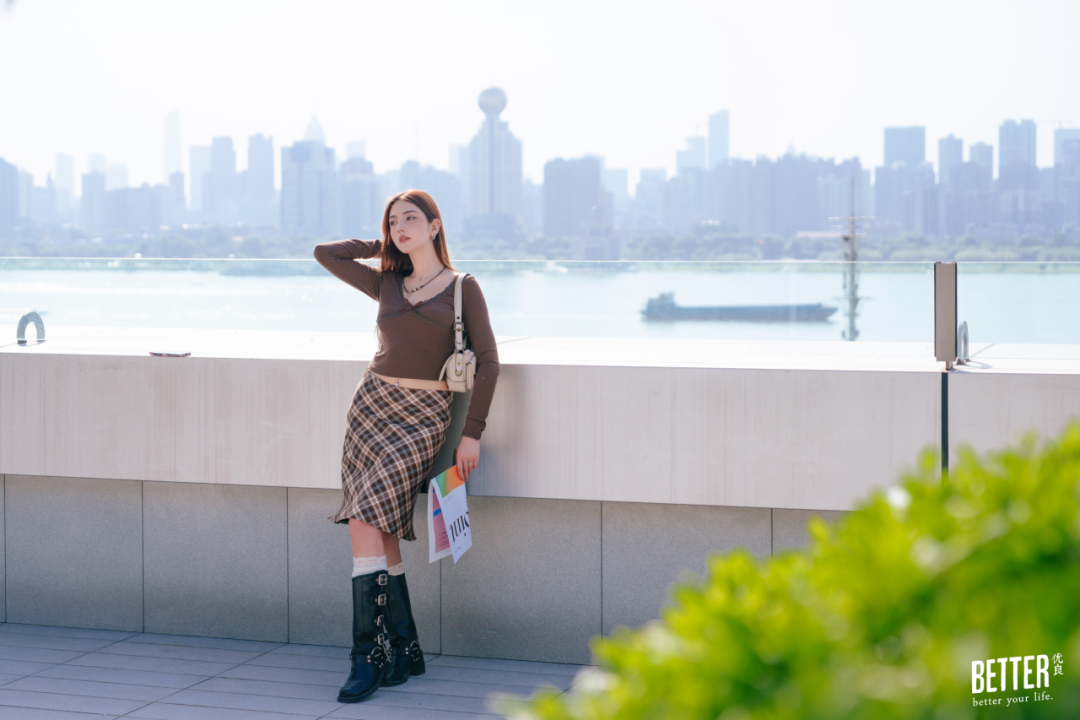 确认好妆容,直接去最佳观景打卡位——七楼落日剧场的江景露台上,白浪千叠,月亮湾城市阳台如立轴,抖开一幅江城山水画卷,不用去挤中华路码头,就能得到一张朋友圈问爆的长江绝美日落照。