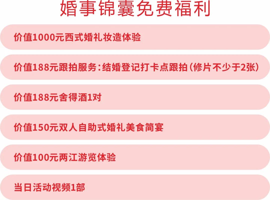亮点二:一站服务。从婚纱服装租赁、跟拍摄影、喜宴酒店预订,3D全彩手办打印、喜咖茶饮、娱乐体验、福利彩票、再到婚车喜品以及蜜月旅行规划,喜堂婚恋体验馆都能满足新人的需求。