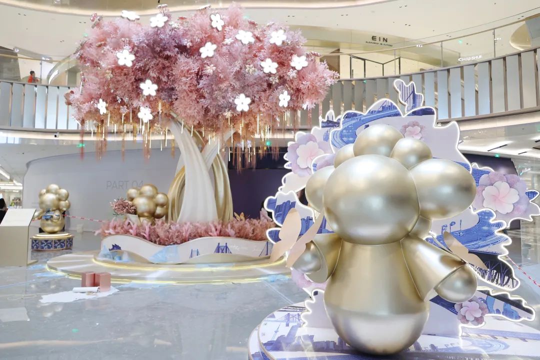 「祈愿樱花」是潮流时尚艺术家SANCHIA与武昌万象城共创作品首展。团簇的樱花挂满枝头,一棵灵动的樱花许愿树唯美亮相,作品借由浪漫的艺术语言,融合楚蓝、黄鹤楼、长江大桥等在地文化或标志性建筑,以纹样之美诠释武汉文化底蕴,为艺术季增添时尚色彩。