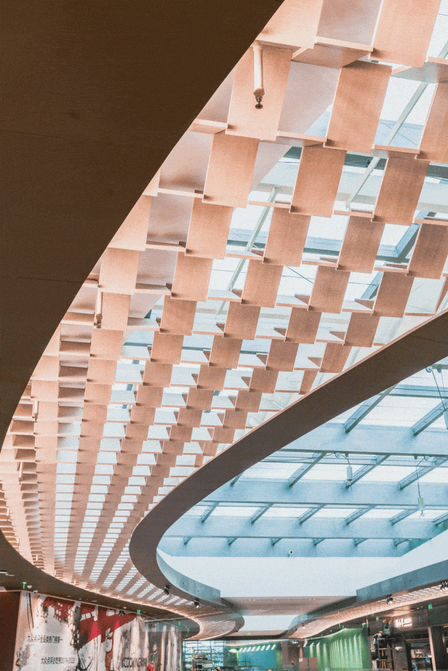国际美学大师以光为灵感,将自然之光引入室内,以超过2000平方米的壮观“屋顶天幕”巧妙设计,让自然光线自由洒落,为这座商业体赋予了独特的“呼吸感”,营造出一种与自然和谐共融的舒适氛围。