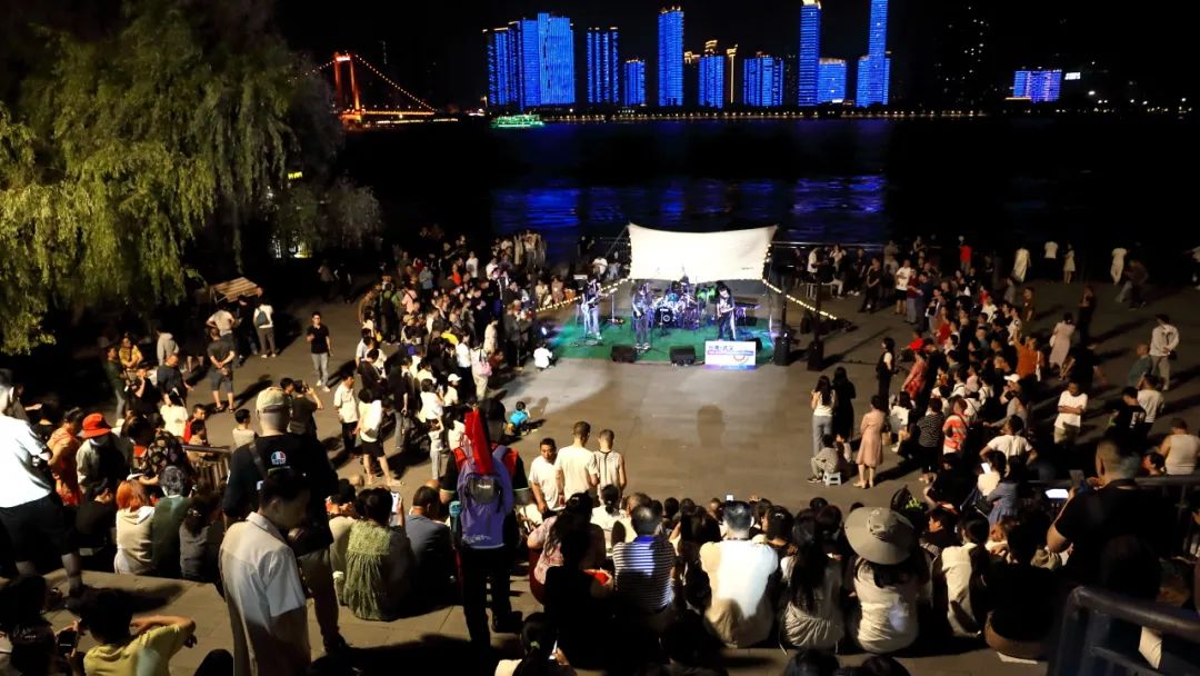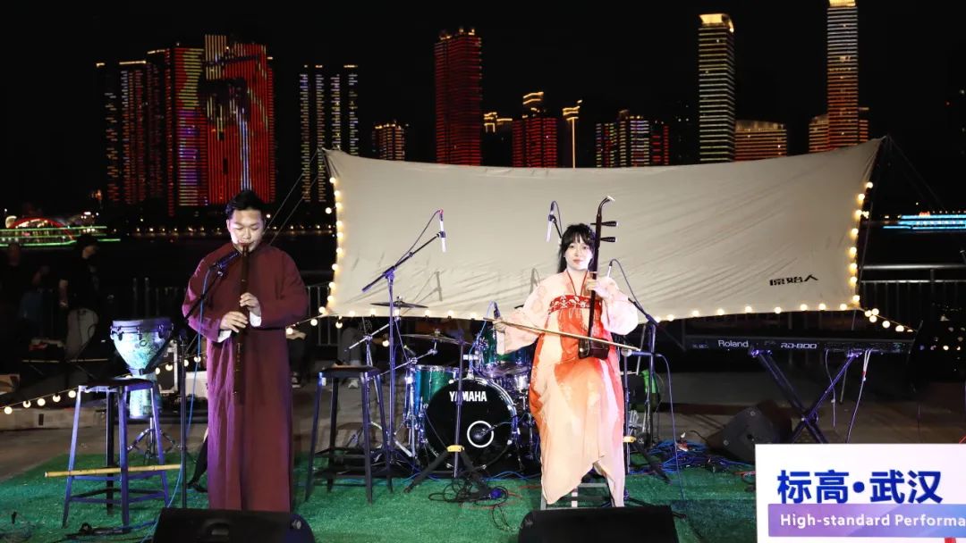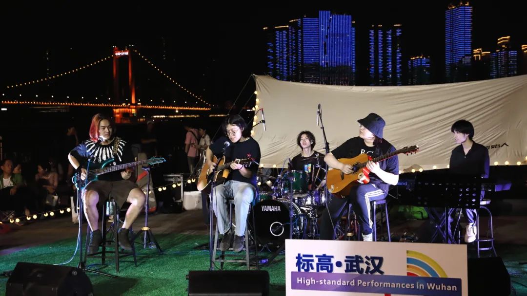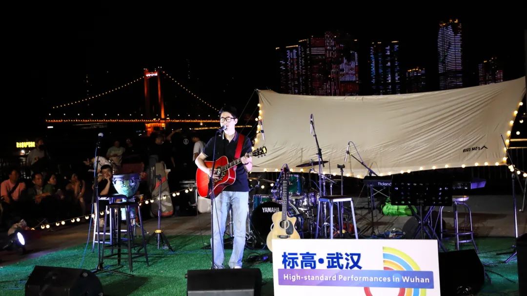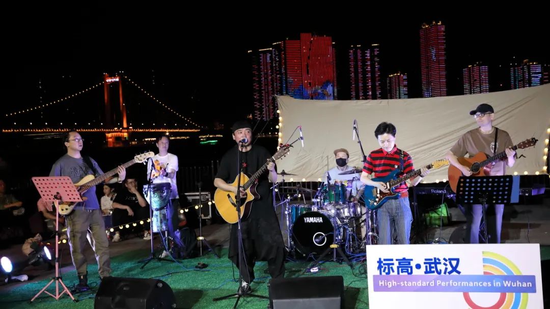随着夜幕的降临,黄花矶的舞台上灯光璀璨,音乐声此起彼伏,为初夏的江滩增添了一抹别样的色彩。来自武汉的本土音乐人纷纷登台献艺,用自己的声音和才华,向观众们展示了武汉音乐的独特魅力和无限可能。