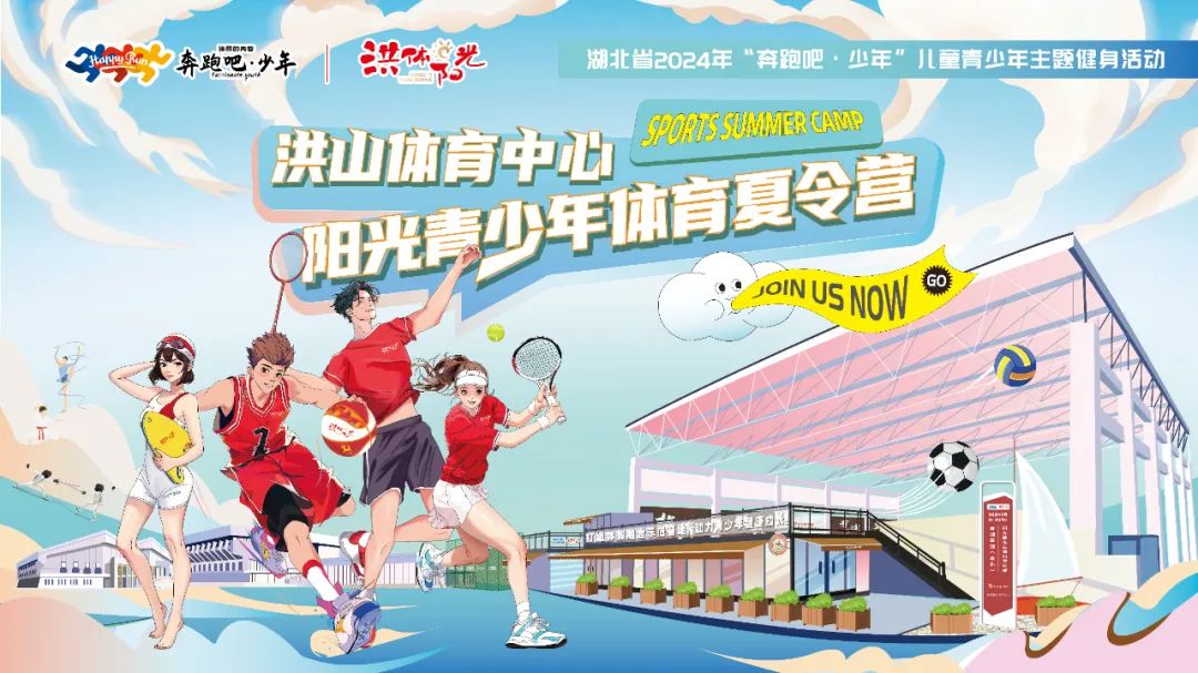 洪山体育中心阳光青少年体育俱乐部将于2024年6月30日至8月23日举办湖北省2024年“奔跑吧·少年”儿童青少年主题健身活动——洪山体育中心阳光青少年体育夏令营,报名时间于2024年6月11日开始,内容涵盖了篮球、羽毛球、游泳、足球、体育播音主持、中国象棋、国际象棋、网球、武术、排球、跳水、花样游泳、击剑、艺术体操、乒乓球、少儿体适能等16个体育训练项目,这个夏天,让多元化的体育夏令营陪你度过!