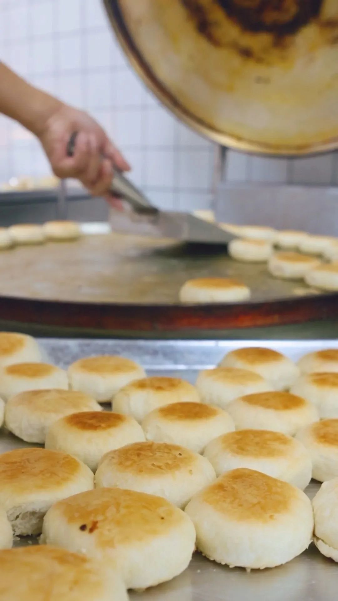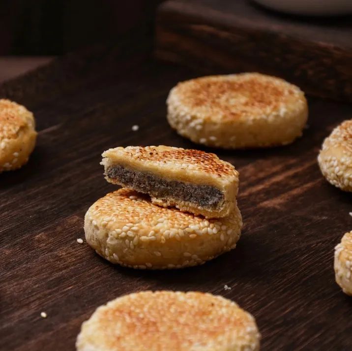 馅饼选用河套平原优质面粉制作的酥皮,搭配非遗技艺老师傅纯手工研磨的馅料,经过8道手工技艺:和面、配料、拉皮、包酥、擀制、包糖、粘芝麻、压形然后放入饼铛双面烘烤12分钟左右,一盘色泽金黄、酥香浓郁的矮子馅饼就出锅了。